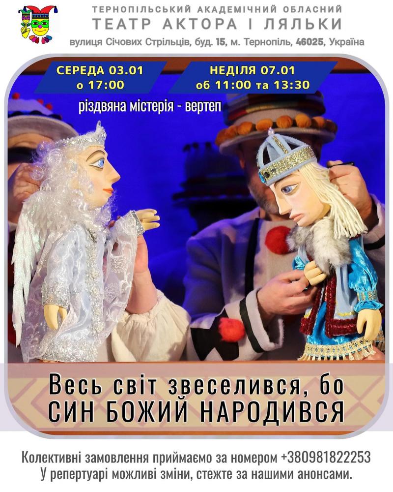 Виставки, майстер-класи, нові кінофільми, екскурсії, вистави і концерти — у Тернополі з 3 по 9 січня буде багато цікавого.
