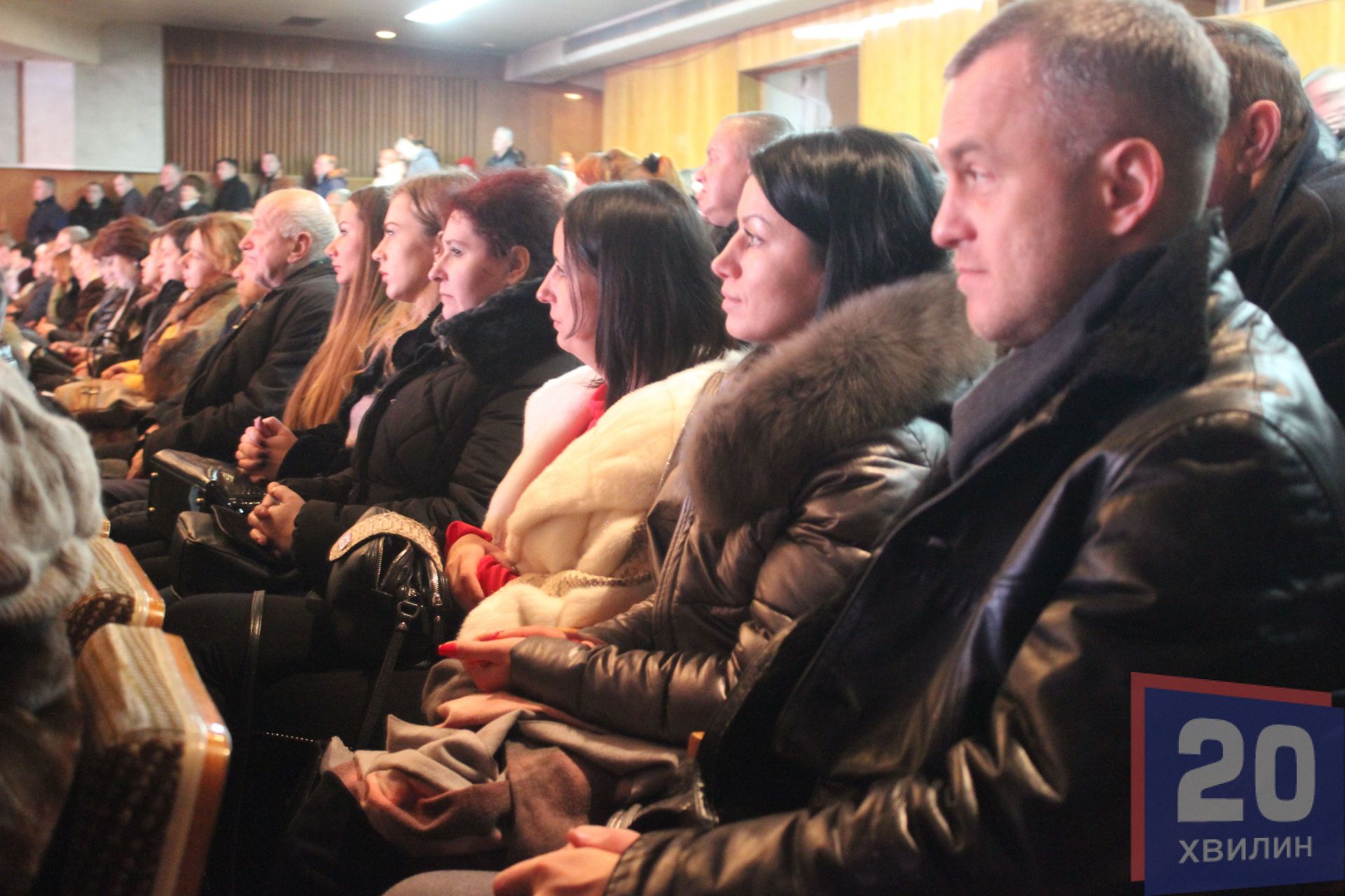 Коли міський голова прибув, камерний оркестр закінчив свій виступ і всі присутні позаймали місця у теплому залі. Декому крісел не вистачило, тому довелося стояти біля стін.