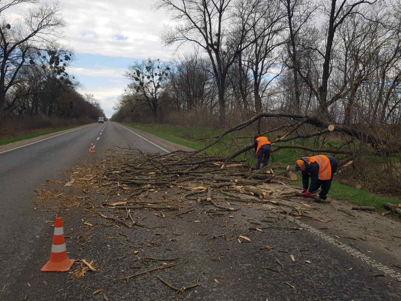 На Тернопільщині через сильні пориви вітру фіксують падіння дерев і гілля на дороги, однак бригади вже працюють на місцях, забезпечуючи безперебійний проїзд автошляхами державного значення.