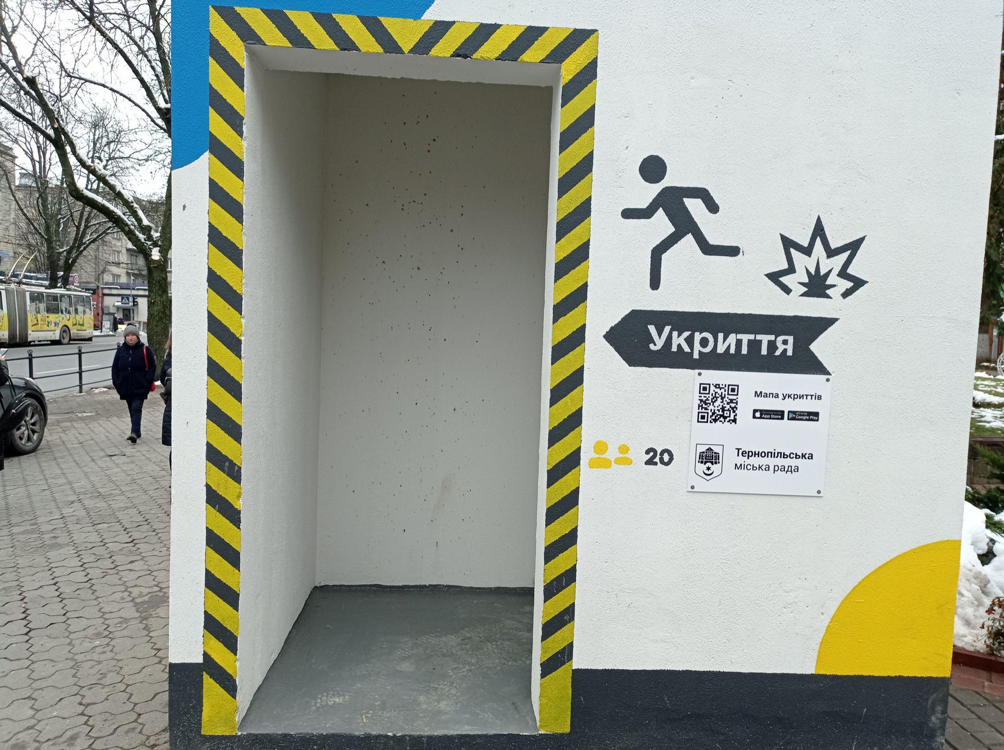 - У Тернополі вже облаштували два бетонні укриття біля зупинок громадського транспорту. Ними може скористатися будь–хто у разі повітряної загрози.