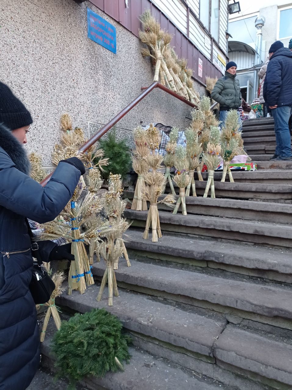 На території Центрального ринку вже можна придбати різдвяний дідух. Найбільше їх біля входу до продуктового павільйону. Там традиційно продають прикраси до різних свят, кошики, банки до водохреща.