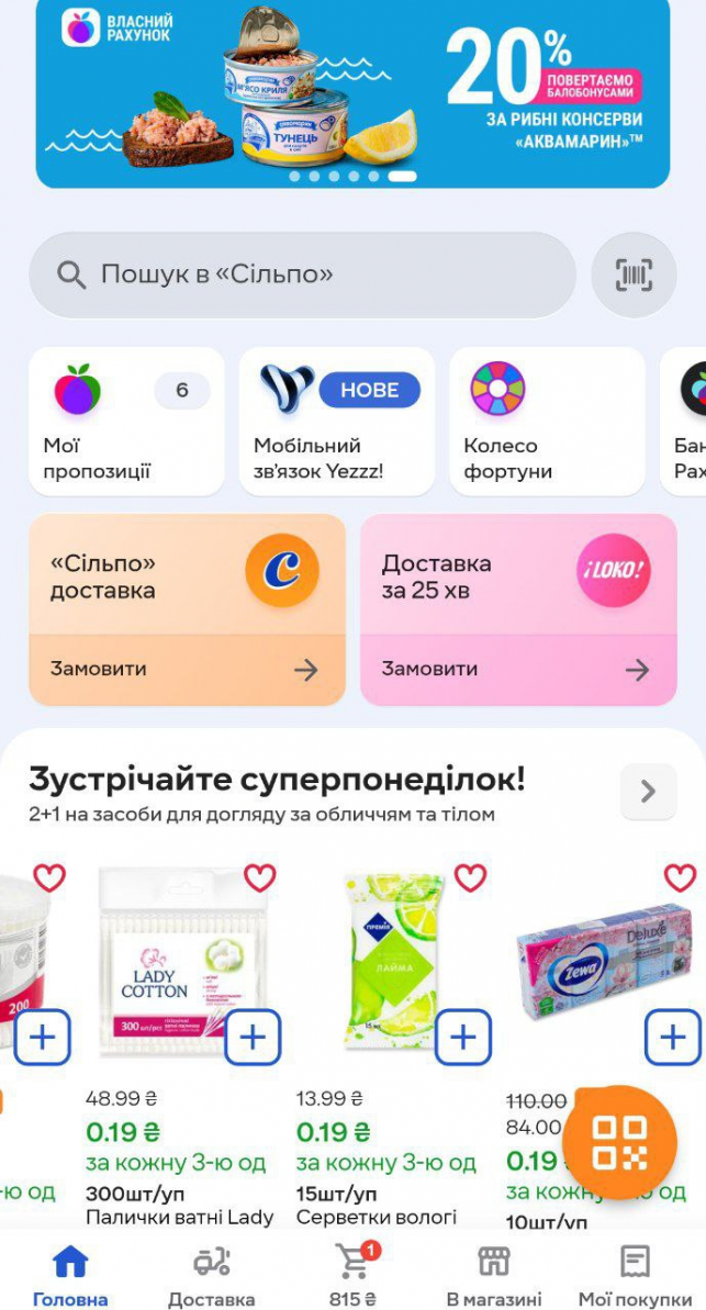 Замовити продукти можна через додаток «Сільпо». Для цього треба обрати товарів на суму від 399 гривень.