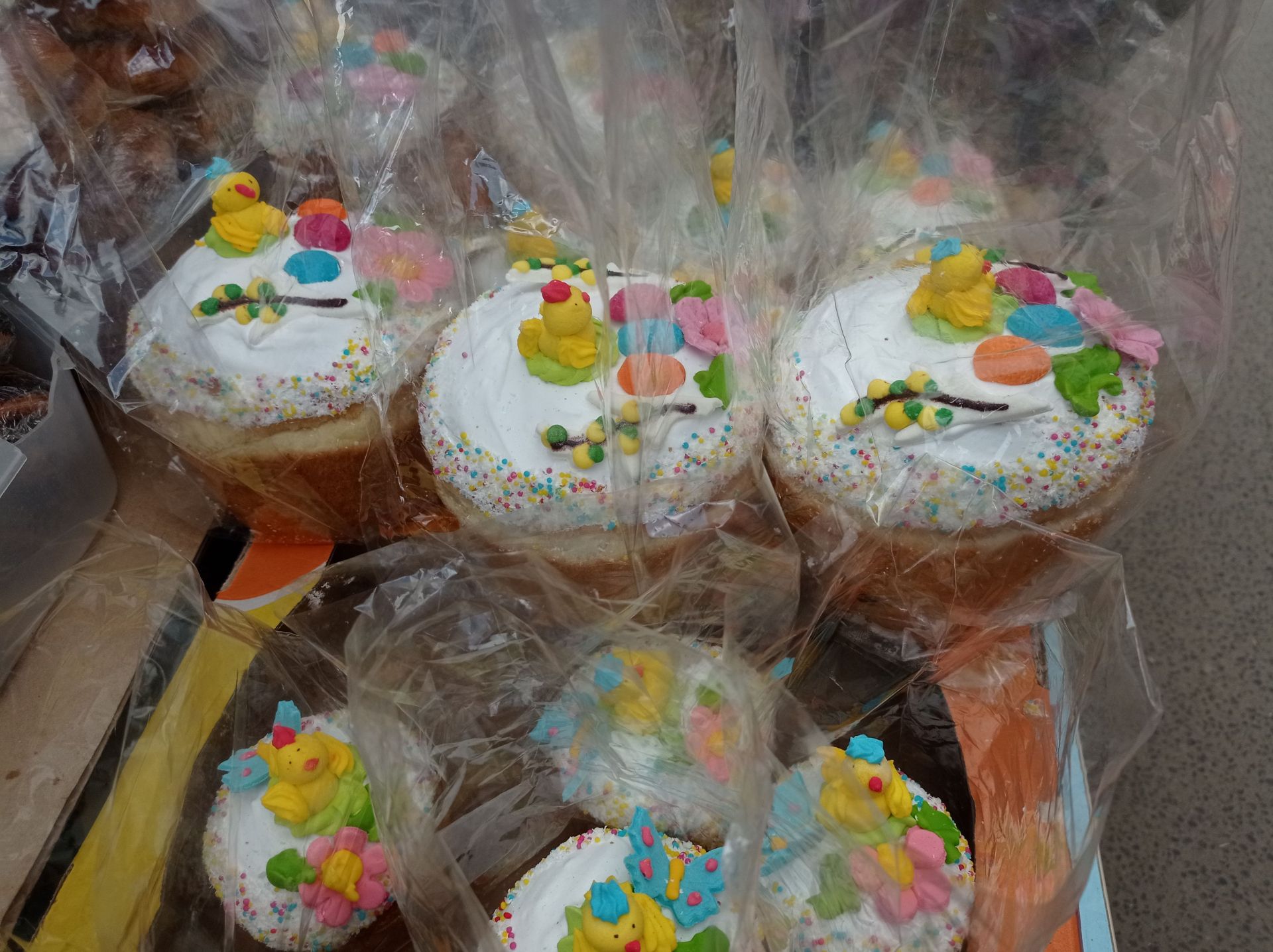 Паски, прикрашають курчатами, квітами, метеликами, вербою з глазурі. Такі паски коштують 30 гривень за маленьку, 55 – середня та 75 грн – велика. Вага 200 – 600 грамів.