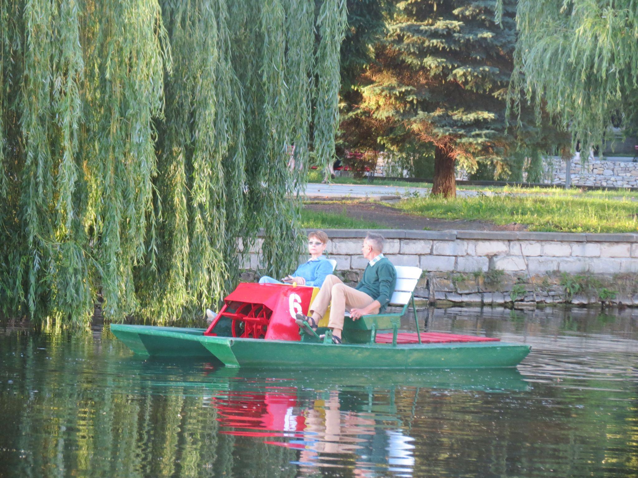 У парку Шевченка можна покататись на катамаранах навколо острівця «Чайка». Всі вони 4-х містні. 30 хвилин катання коштує 80 грн. Година – 130 грн. Графік роботи у будні дні з 12 до 20 години, у вихідні з 11 до 21.