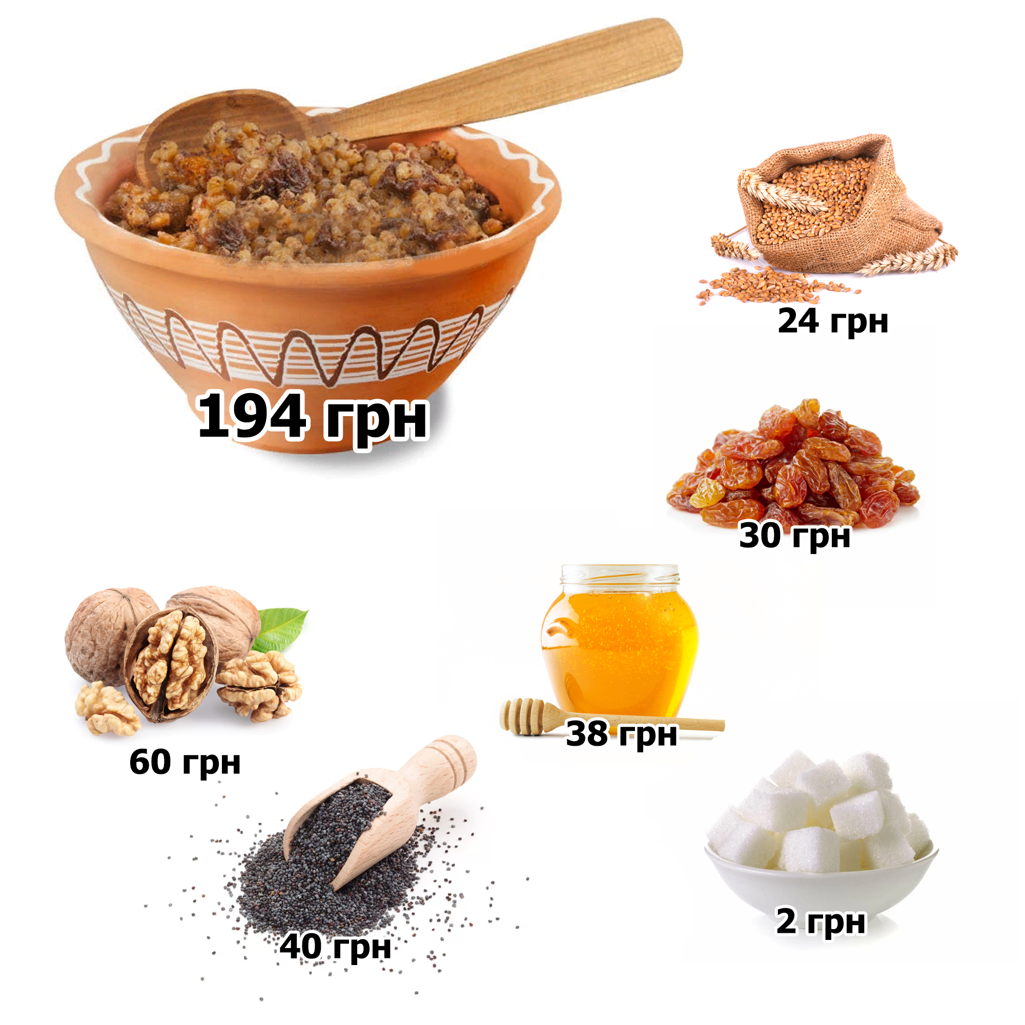 Ми порахували вартість усіх інгредієнтів для приготування куті. Ціни дивіться на інфографіці.