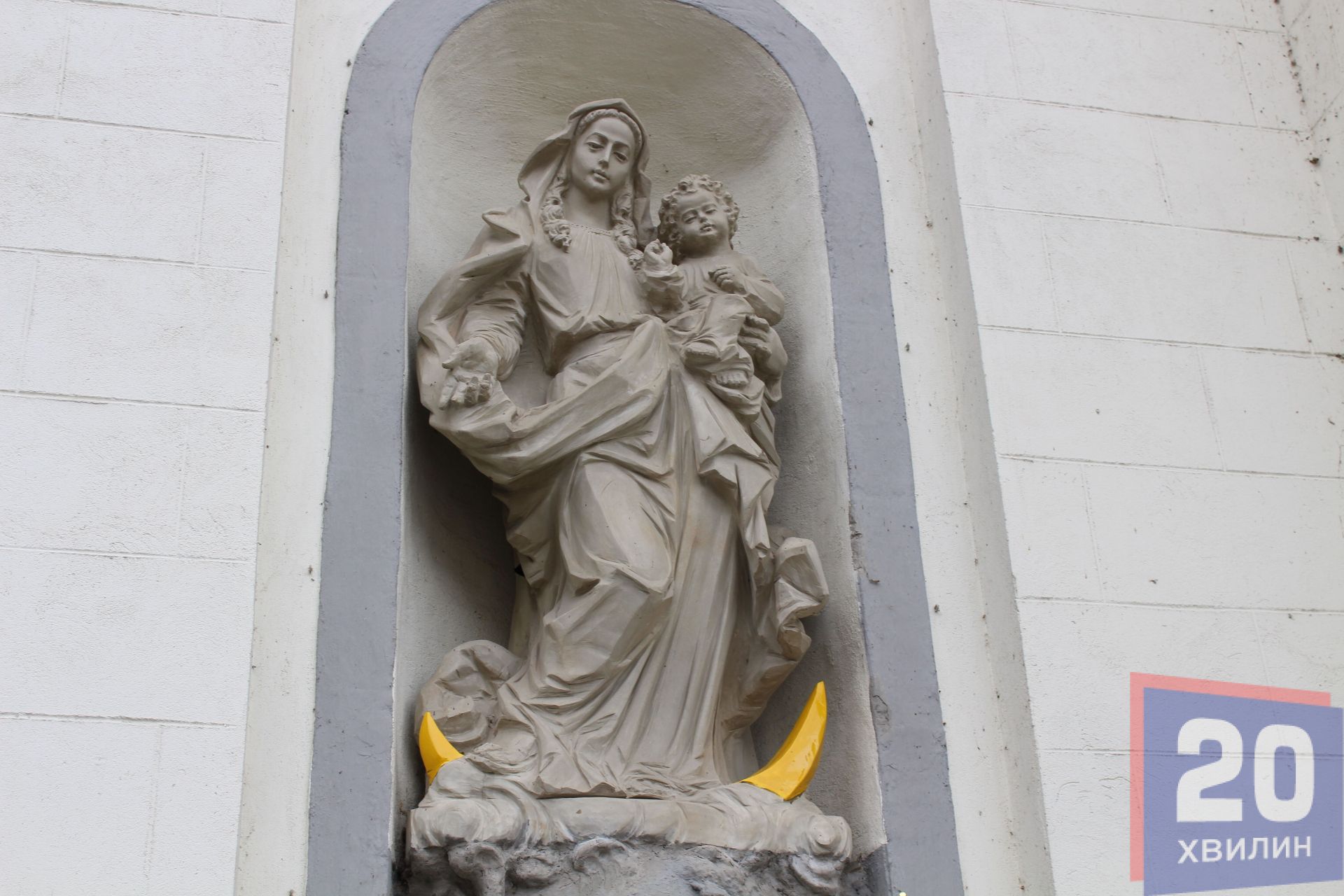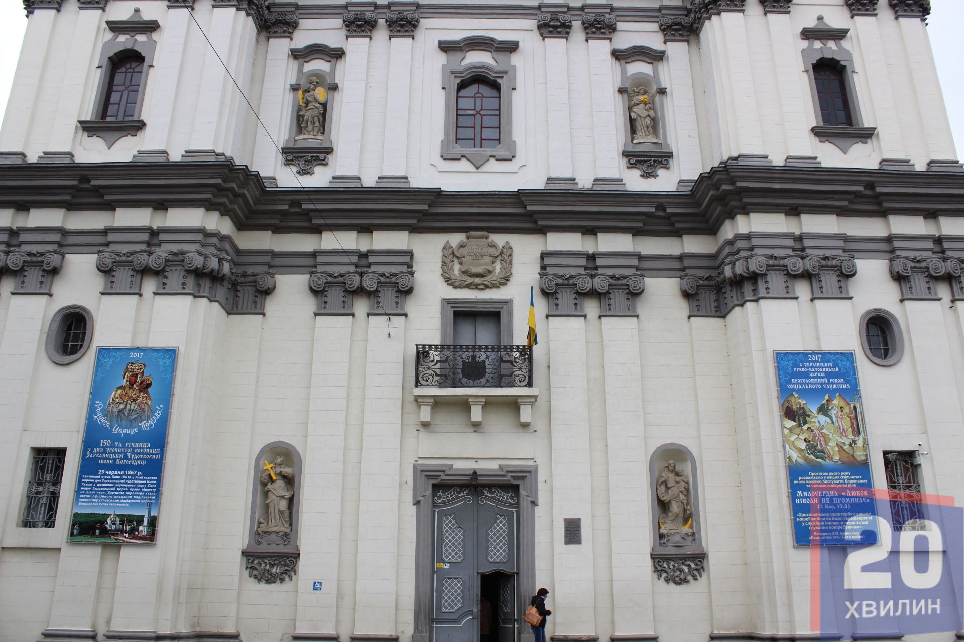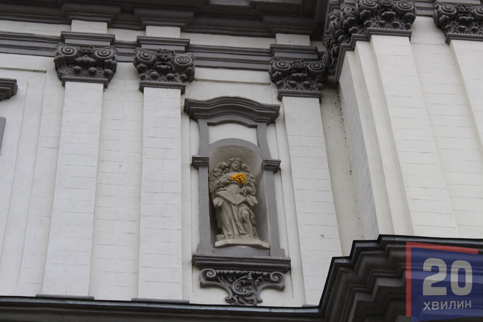 На фасаді Архикатедри жовтим кольором вже оздобили скульптури Богородиці, ангелів і покровительки міста Тернополя святої Теклі. Згодом ці елементи оздоблять сусальним золотом.