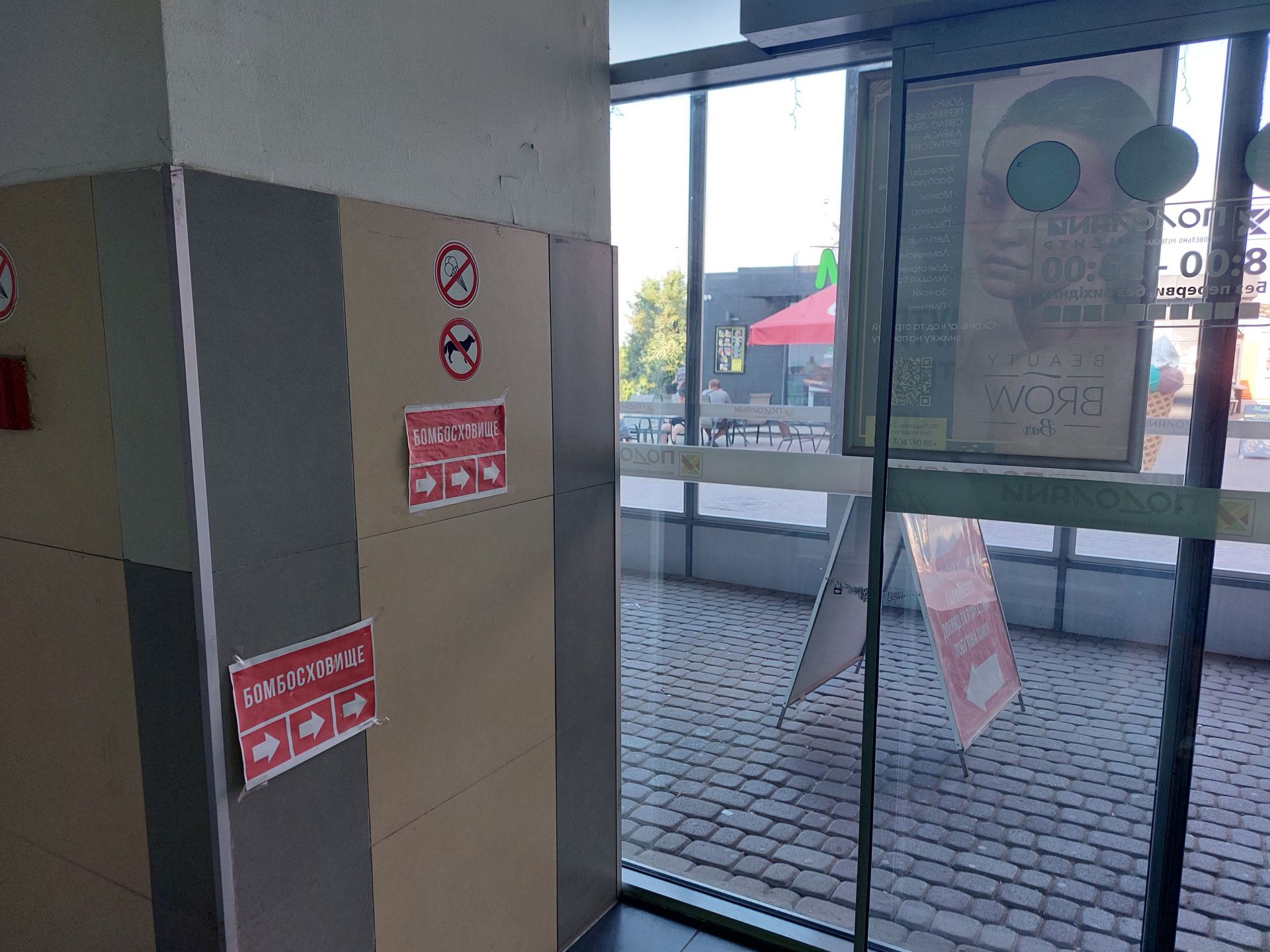 На виході з торгового комплексу щокілька метрів вказівки, куди прямувати в укриття.