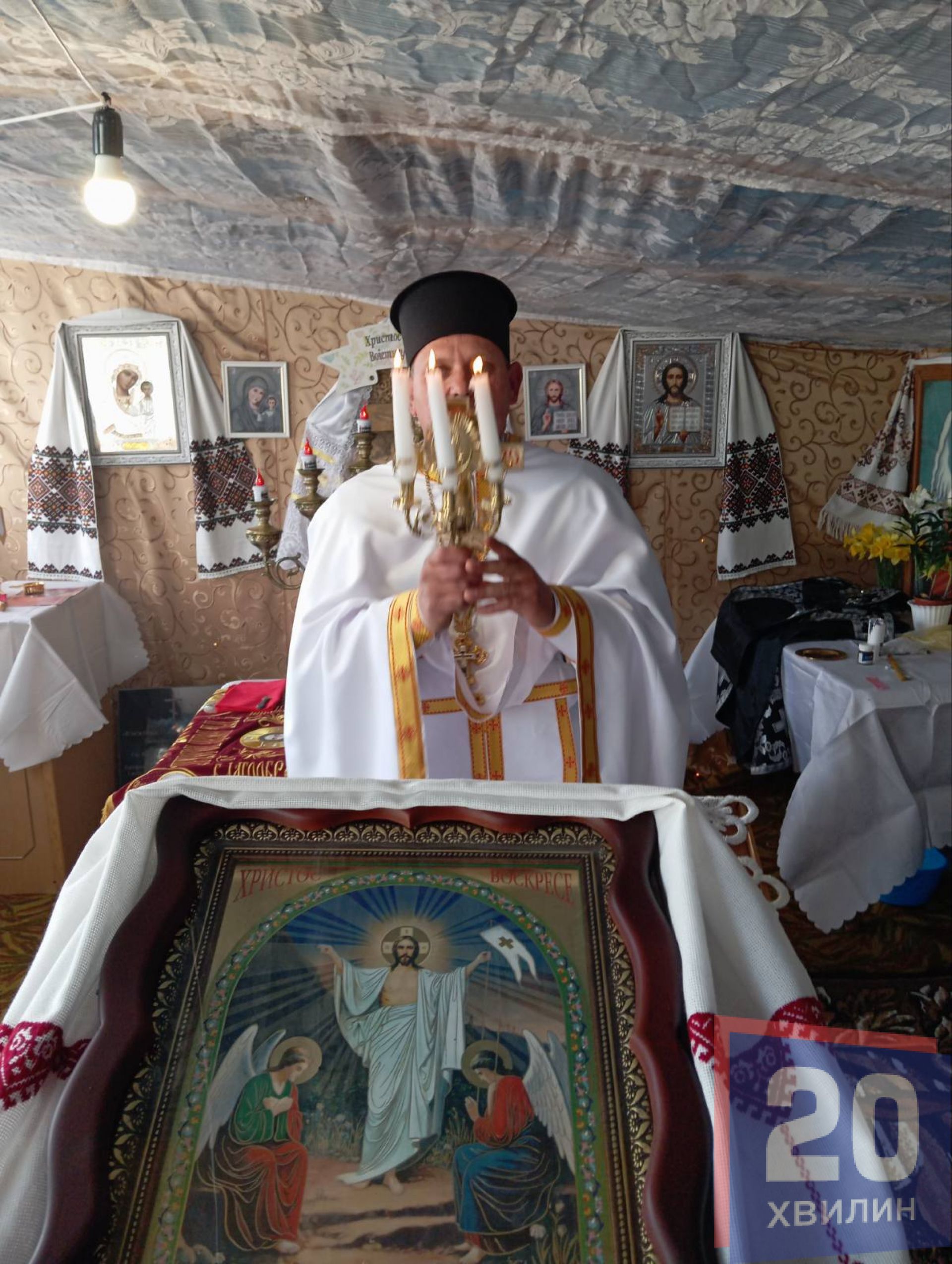 Служать просто неба. У Катеринівці, де місяць тому вщент згорів храм, освятили паски