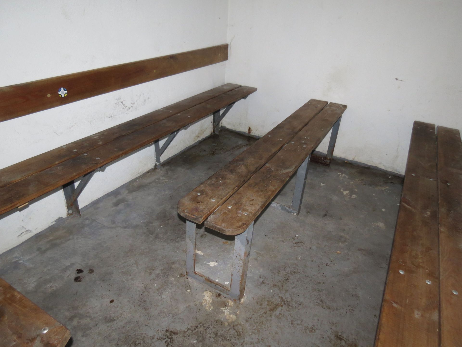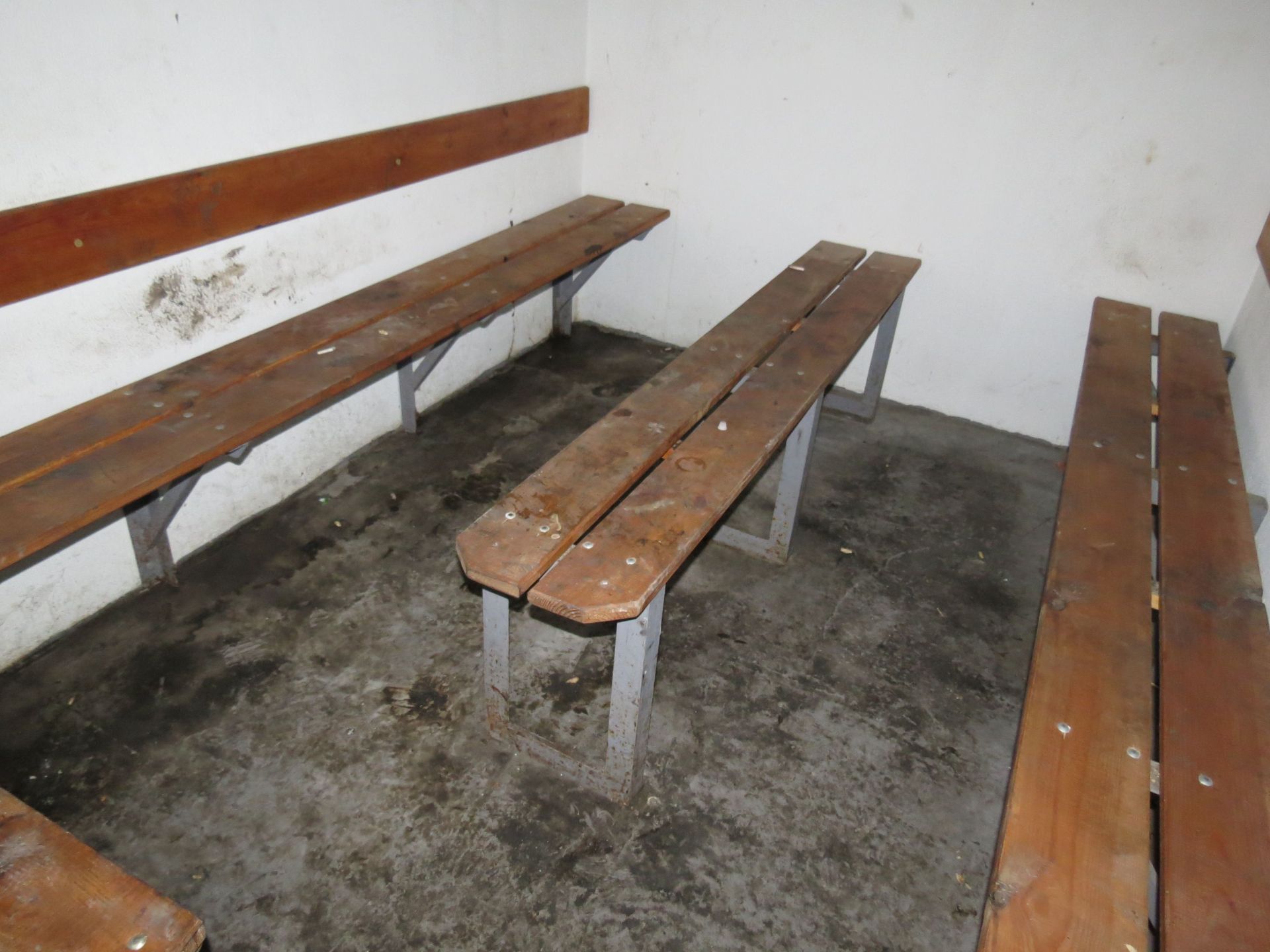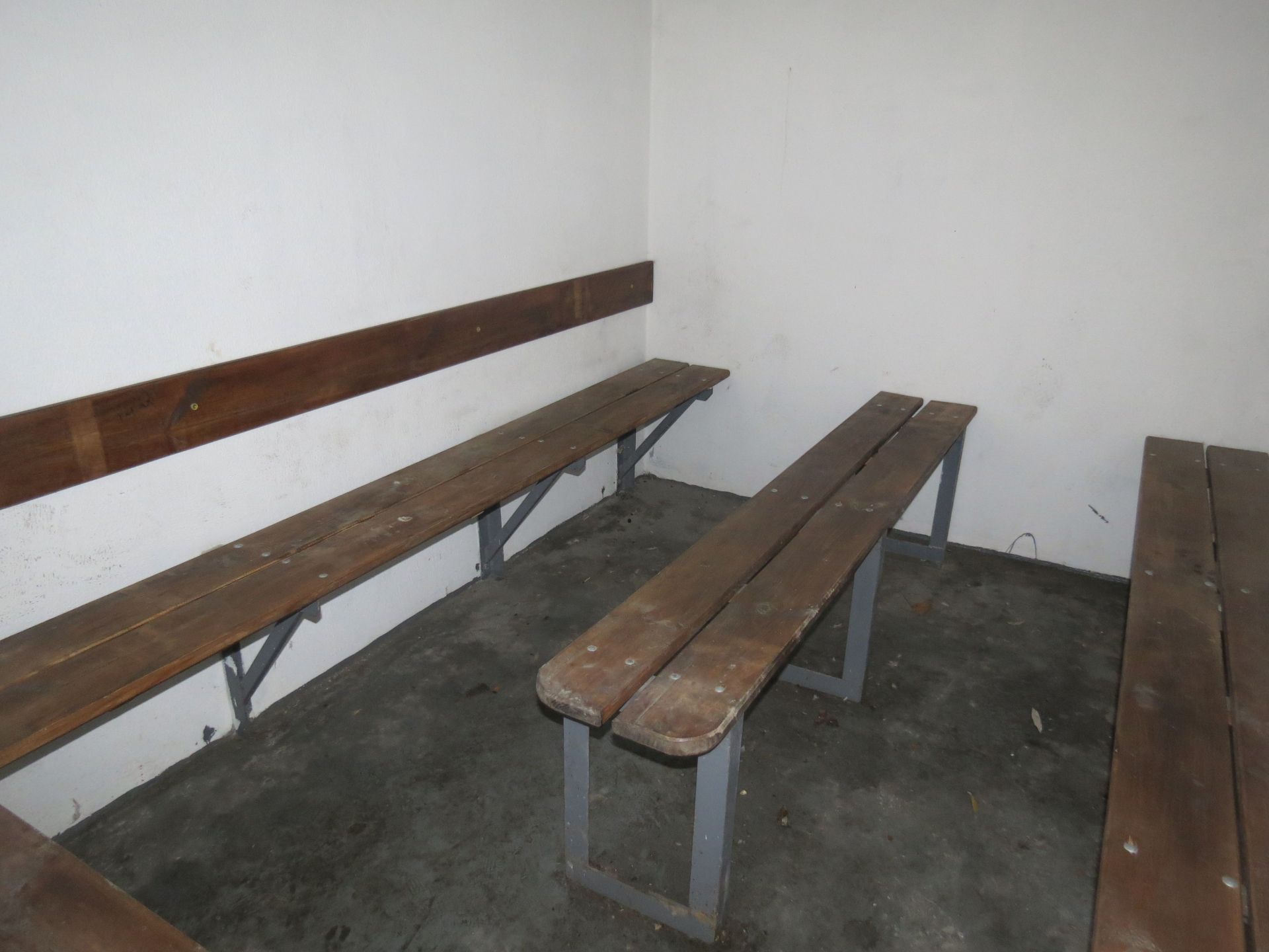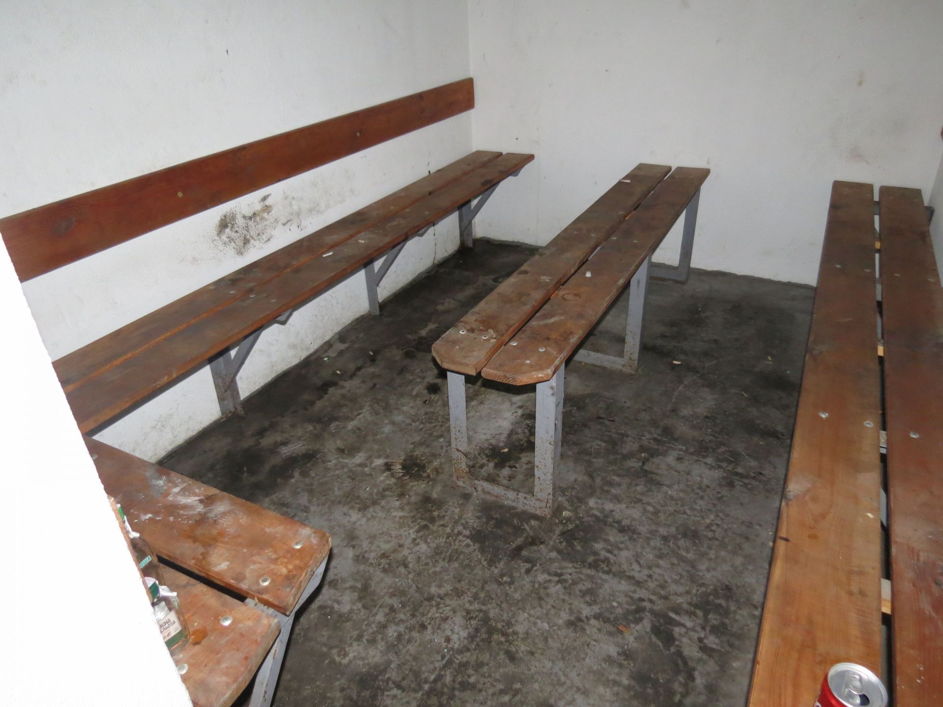 В укритті біля лікарні хтось поклав картон на лавку, щоб не забруднити одяг, бо вони були брудні. На підлозі – зерно. Можливо, хтось годував голубів, бо всередині на підлозі пташиний послід. Запах – відповідний.