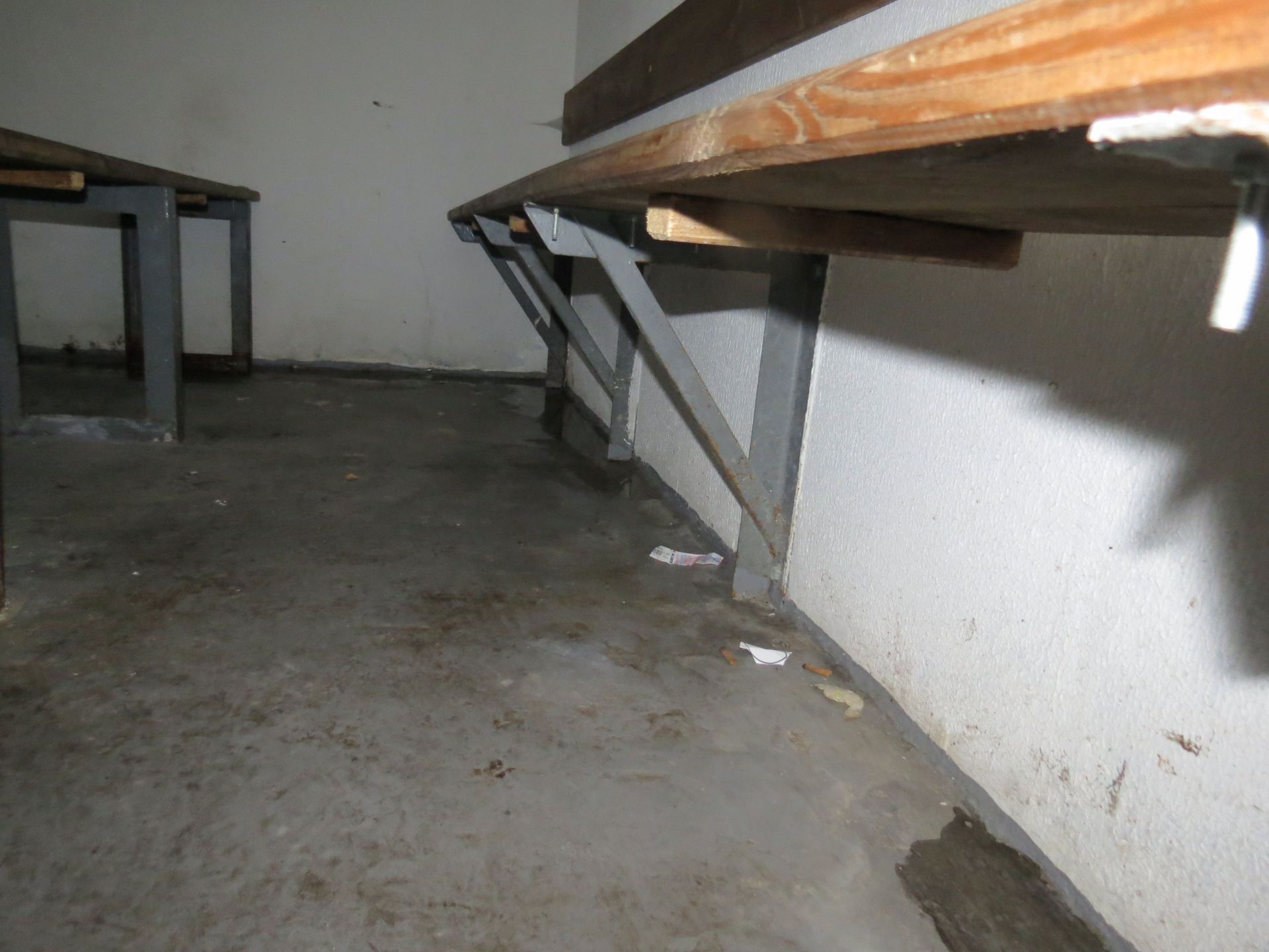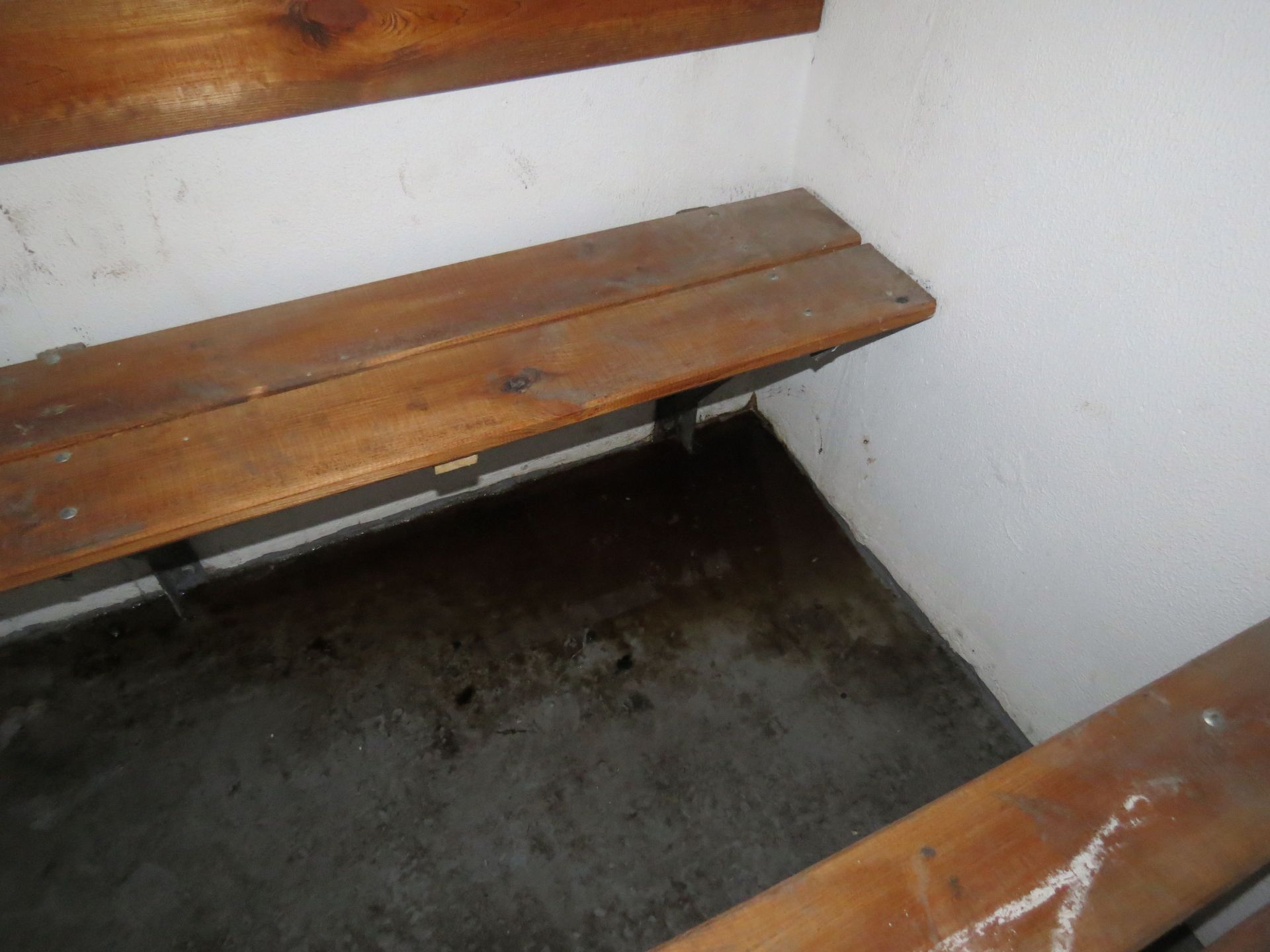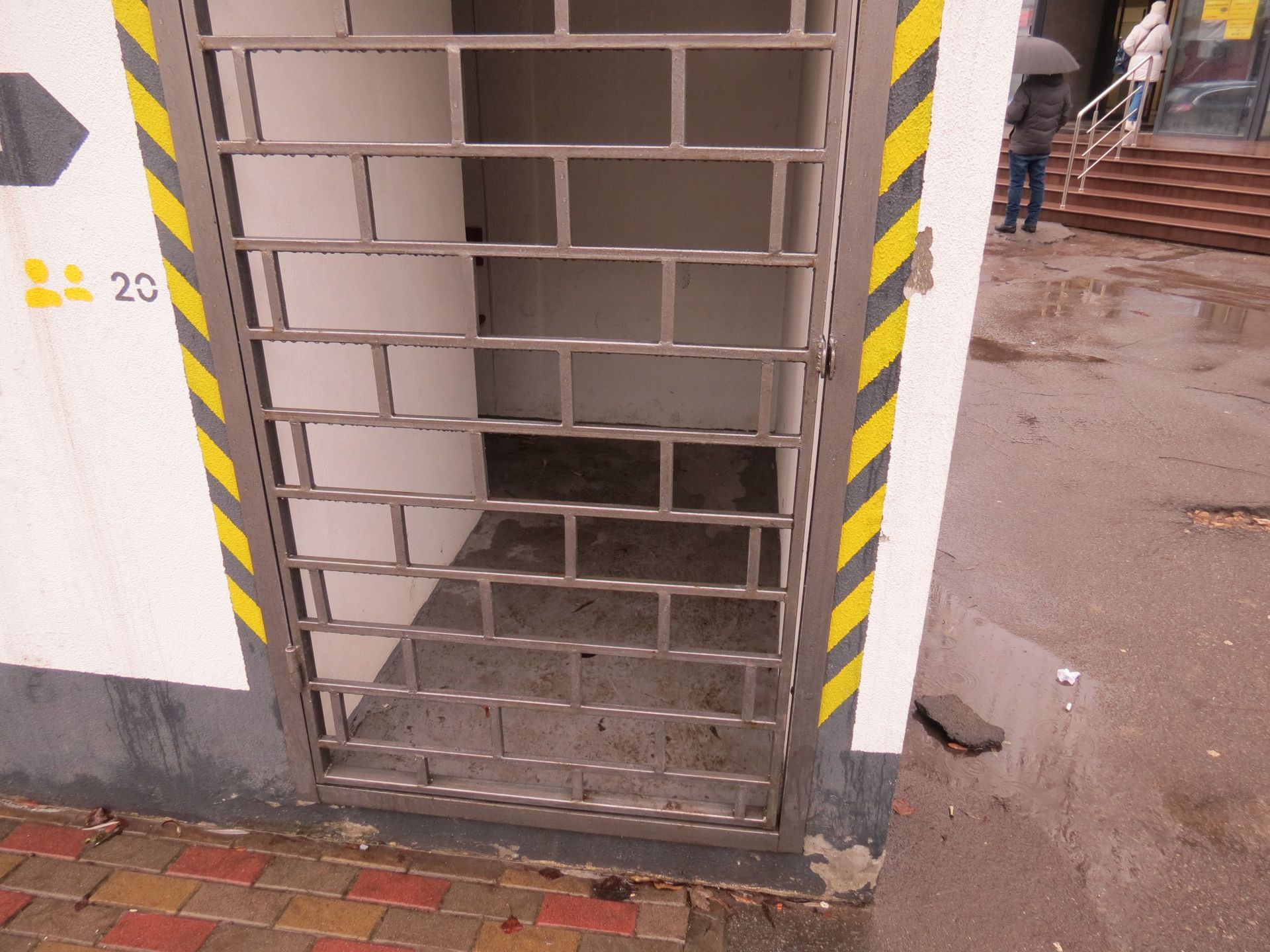 На вході до укриття також встановили решітку, бо туди ходили в туалет. Решітку на замок не зачиняють, однак деякий час його відкривали лише під час повітряної тривоги. Всередині – брудна підлога і лавки та сморід.