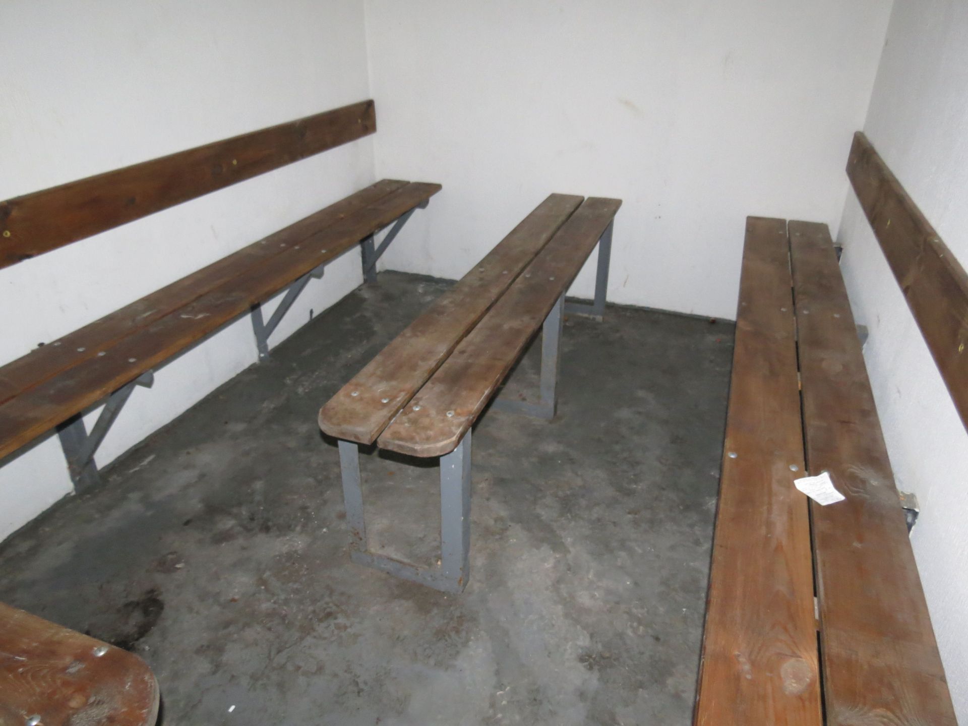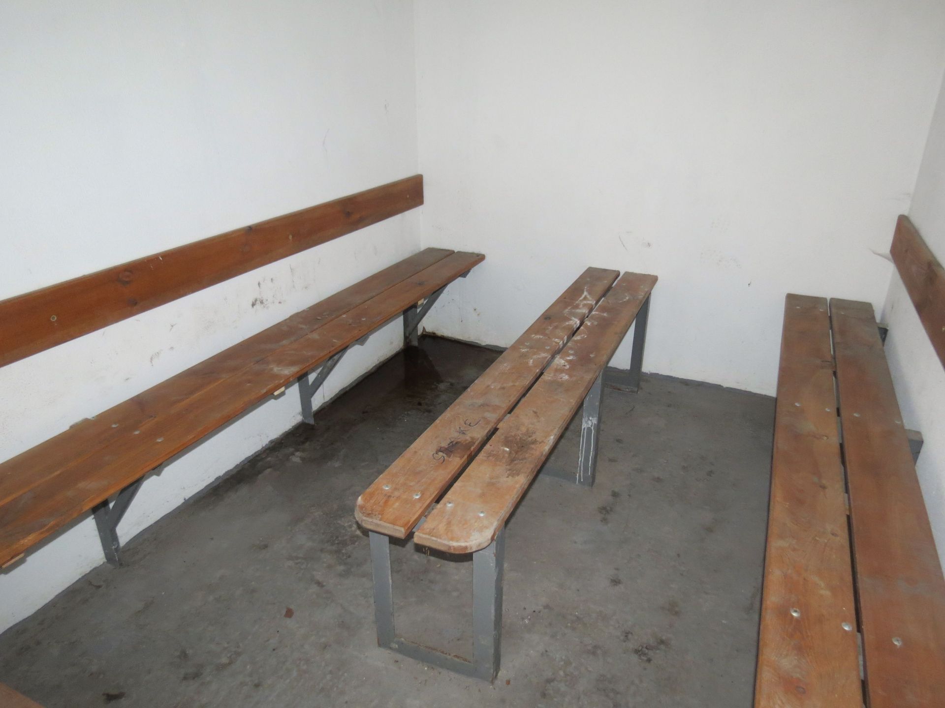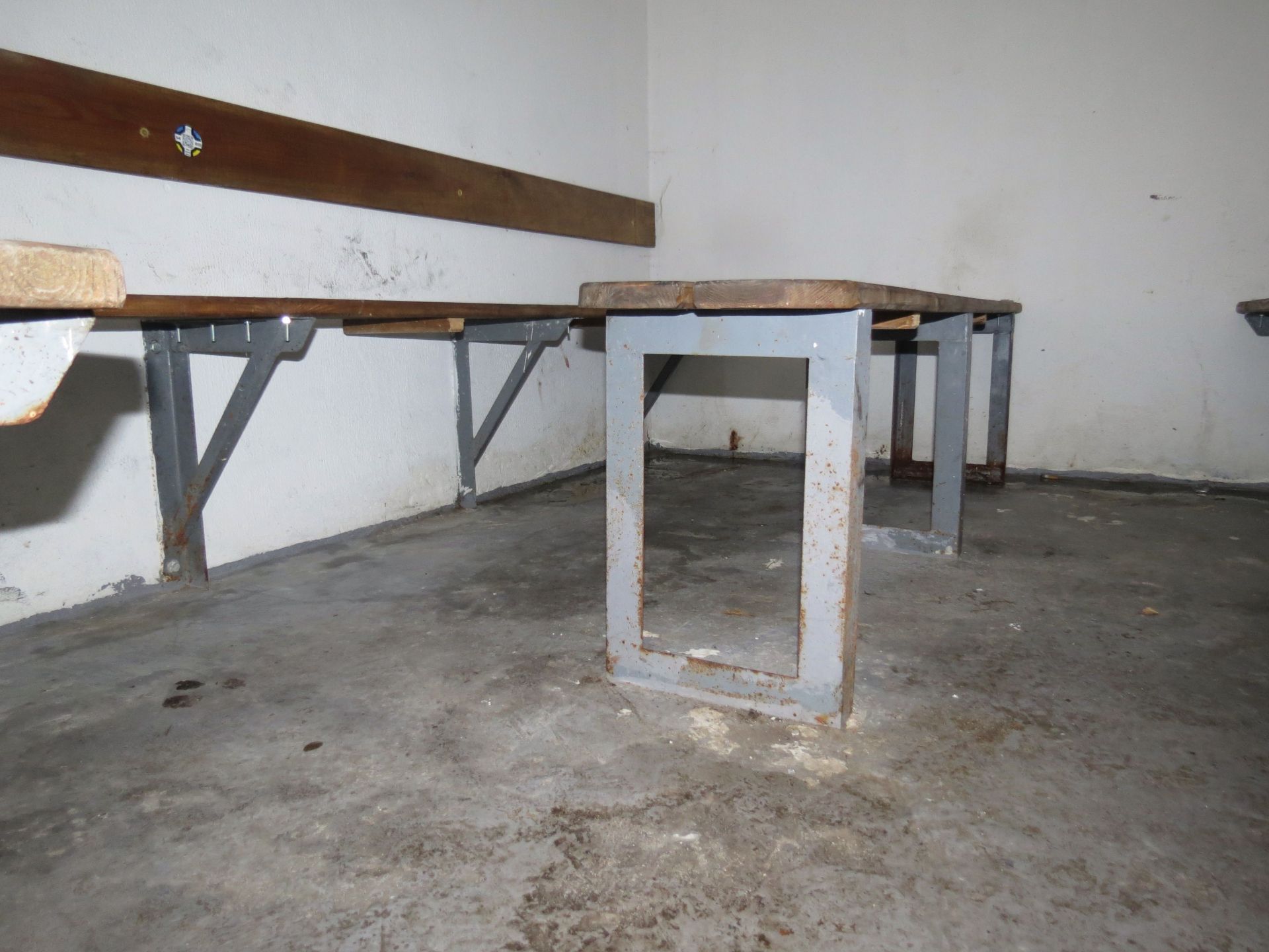 На вході до укриття також встановили решітку, бо туди ходили в туалет. Решітку на замок не зачиняють, однак деякий час його відкривали лише під час повітряної тривоги. Всередині – брудна підлога і лавки та сморід.