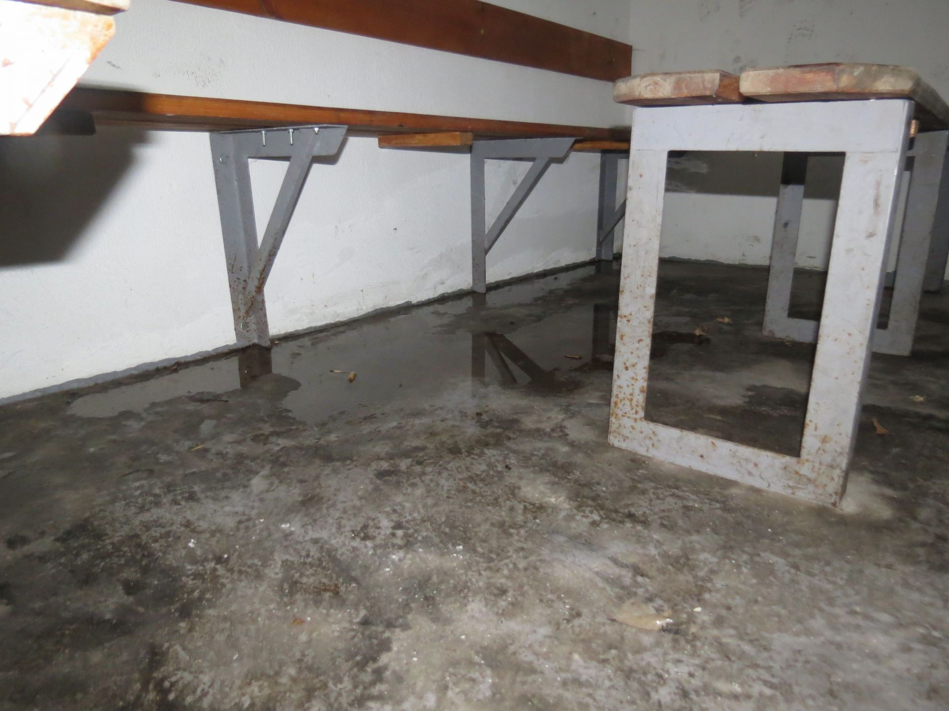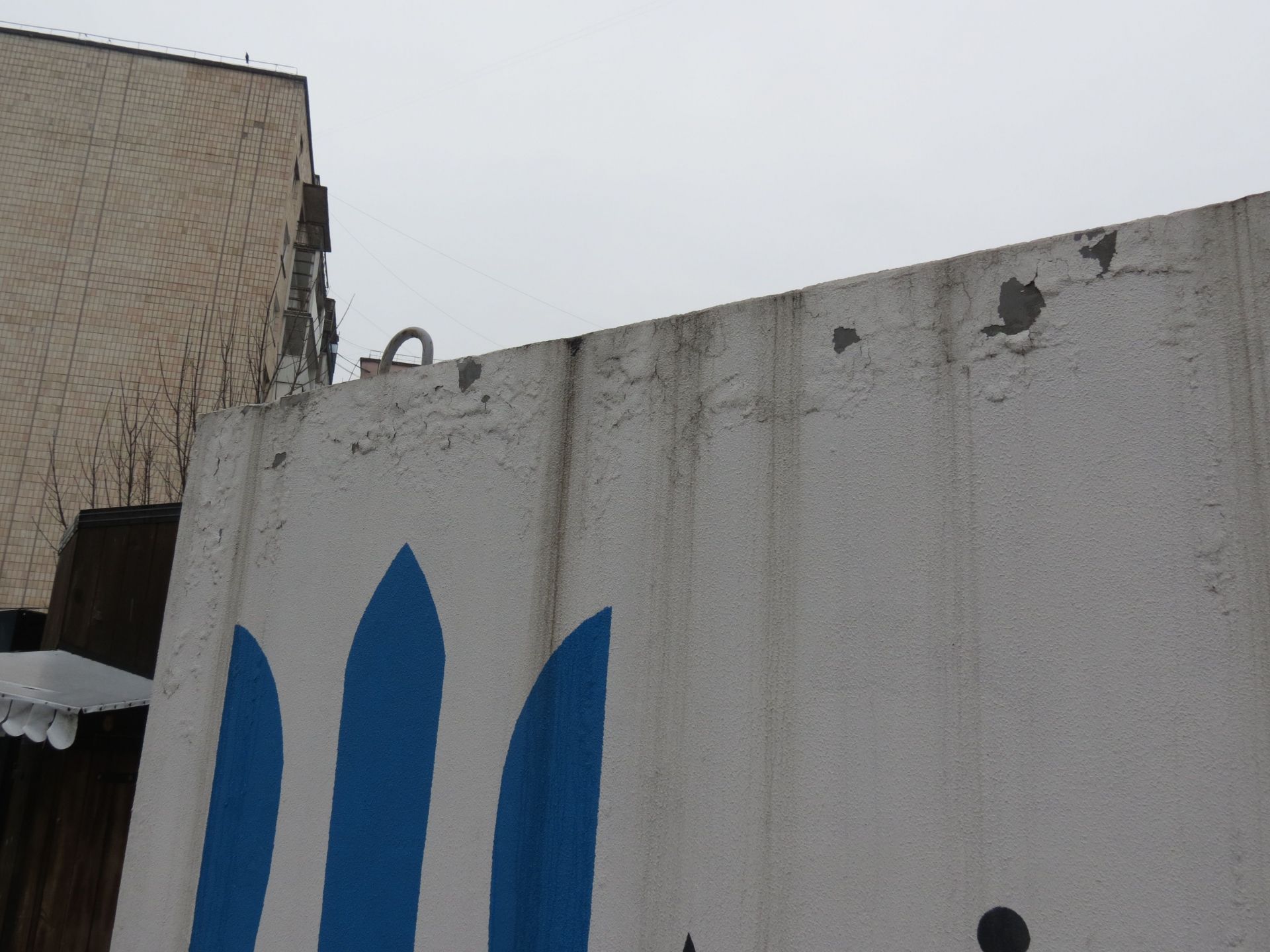 Фасад укриття був в найгіршому стані – штукатурка лущиться. Всередині – бруд, велика калюжа та сморід. На брудній лавці – пуста пляшка з горілки. На стінах сліди від чоботів – хтось вирішив погупати ногами в стіни.