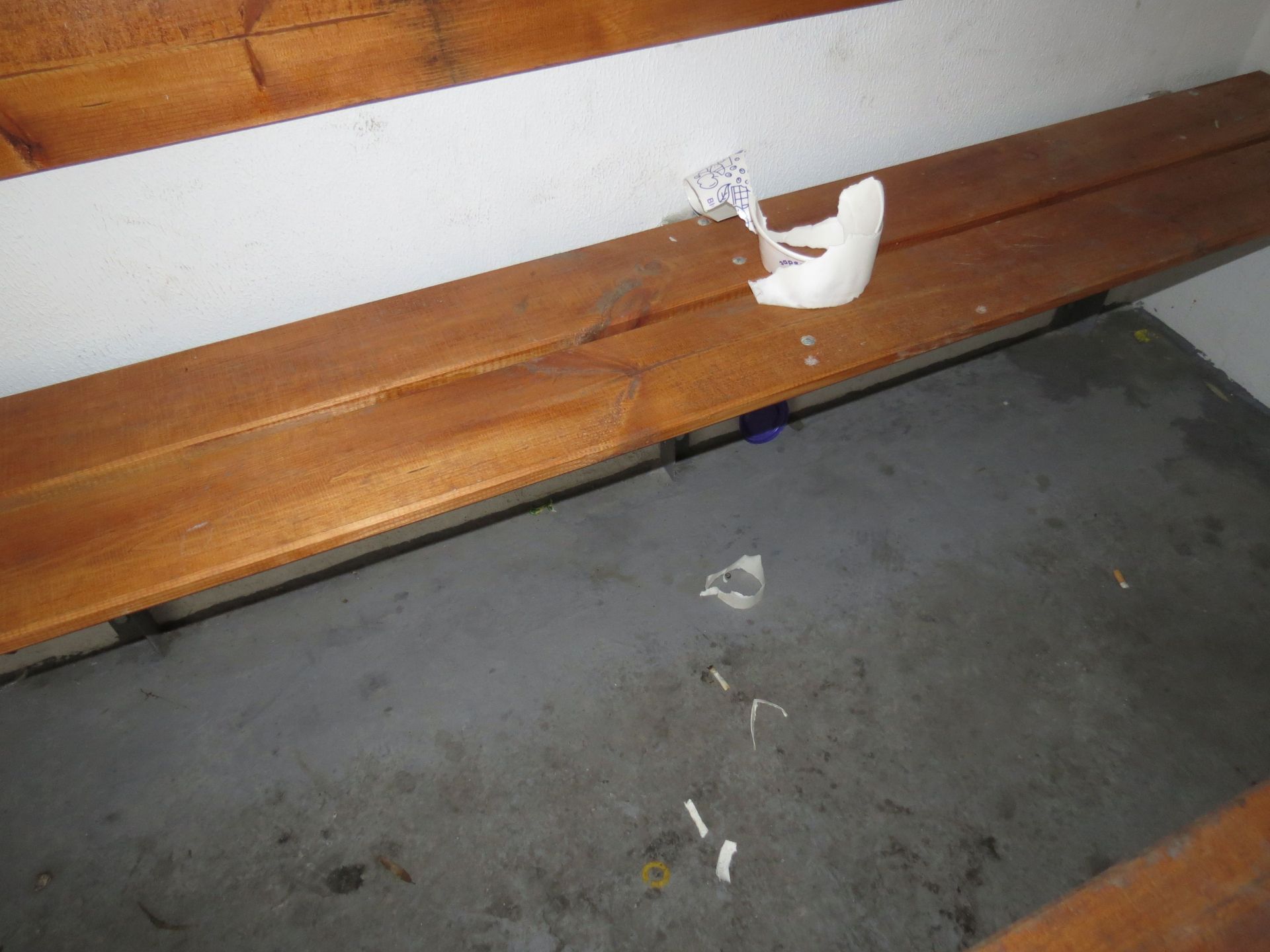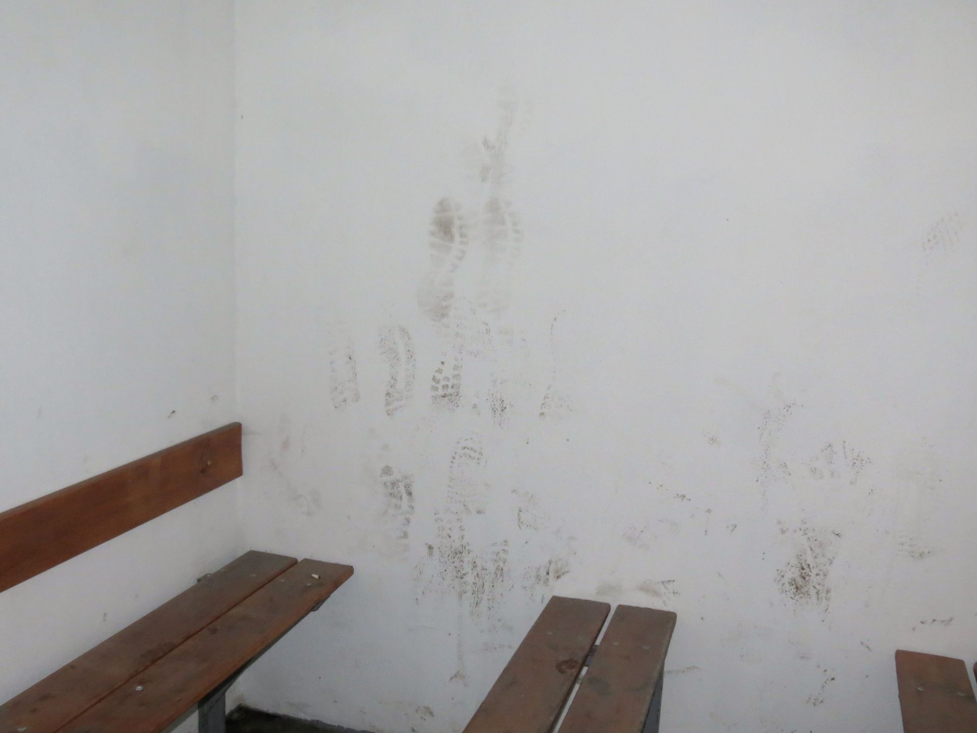 Всередині на підлозі було кілька папіців, упаковка з-під цигарок та плями на підлозі. Запах – ніби у громадській вбиральні.