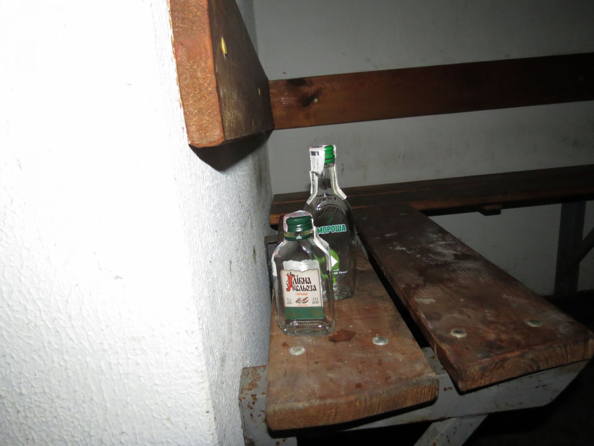 Підлога та лавки цього укриття були найбруднішими з усіх мобільних захисних споруд. Крім багнюки на підлозі залишки фекалій. Всередині жахиливий сморід. Однак когось цей запах не відлякав – на лавках стояли пусті пляшки з горілки.