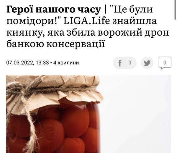 Пам'ятаєте історію, як киянка консервацією збила ворожий безпілотник? Так от, це були помідори) А уявіть на що здатна наша армія і тероборона?