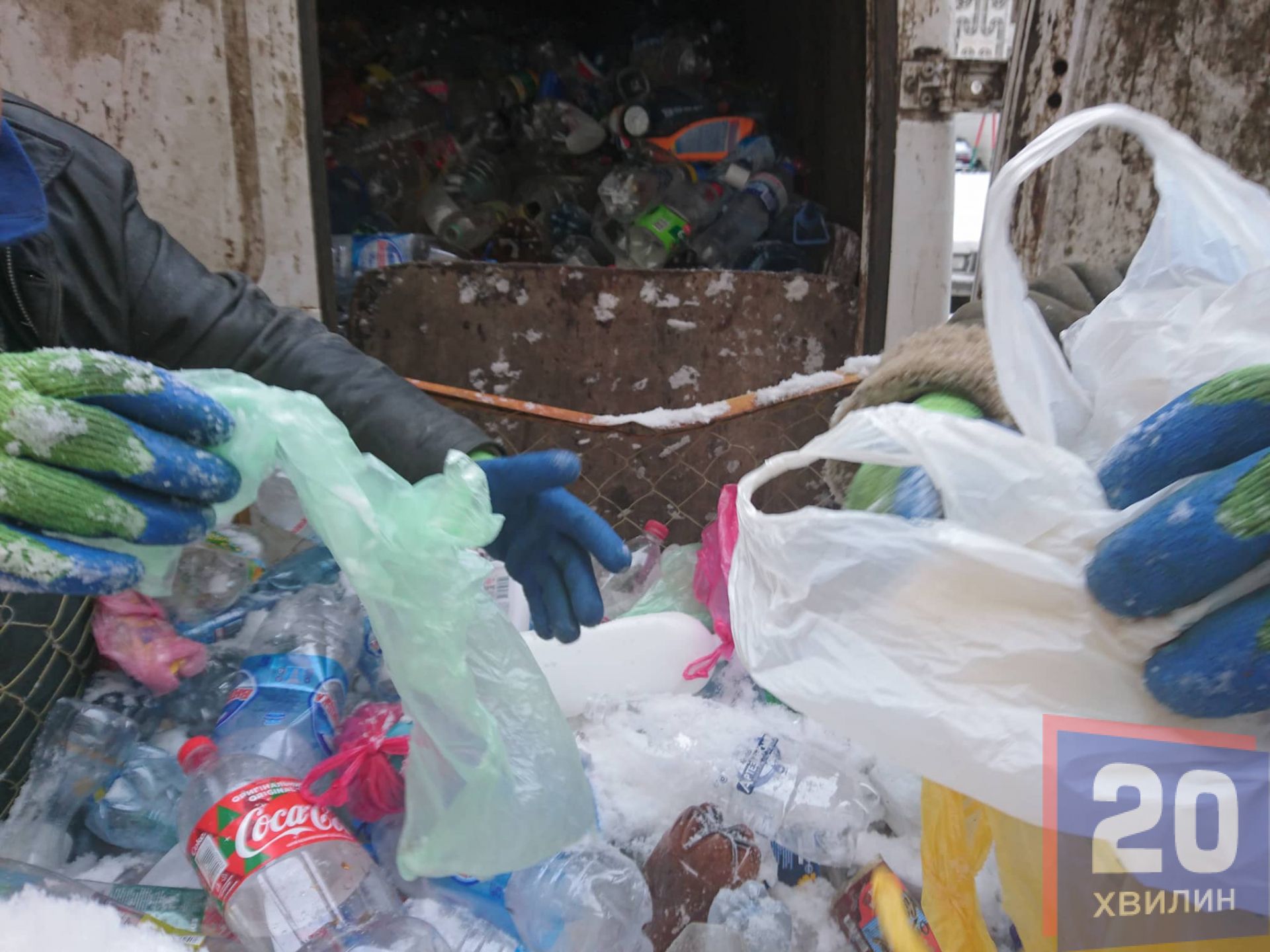 Чоловіки відділяли пластикові пляшки від іншого сміття, якого не мало би бути у сітці для пластику. Журналіст побачила там косметику, дитячі іграшки, побутові предмети, скляні пляшки, залишки їжі та безліч іншого сміття. У 80% під’їздах, які обслуговує підприємство, як кажуть працівники, люди разом з пластиковими пляшками викидають й інші відходи.