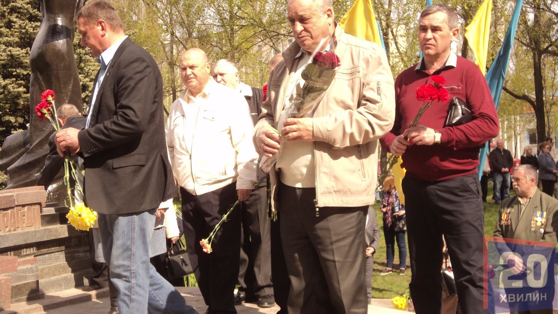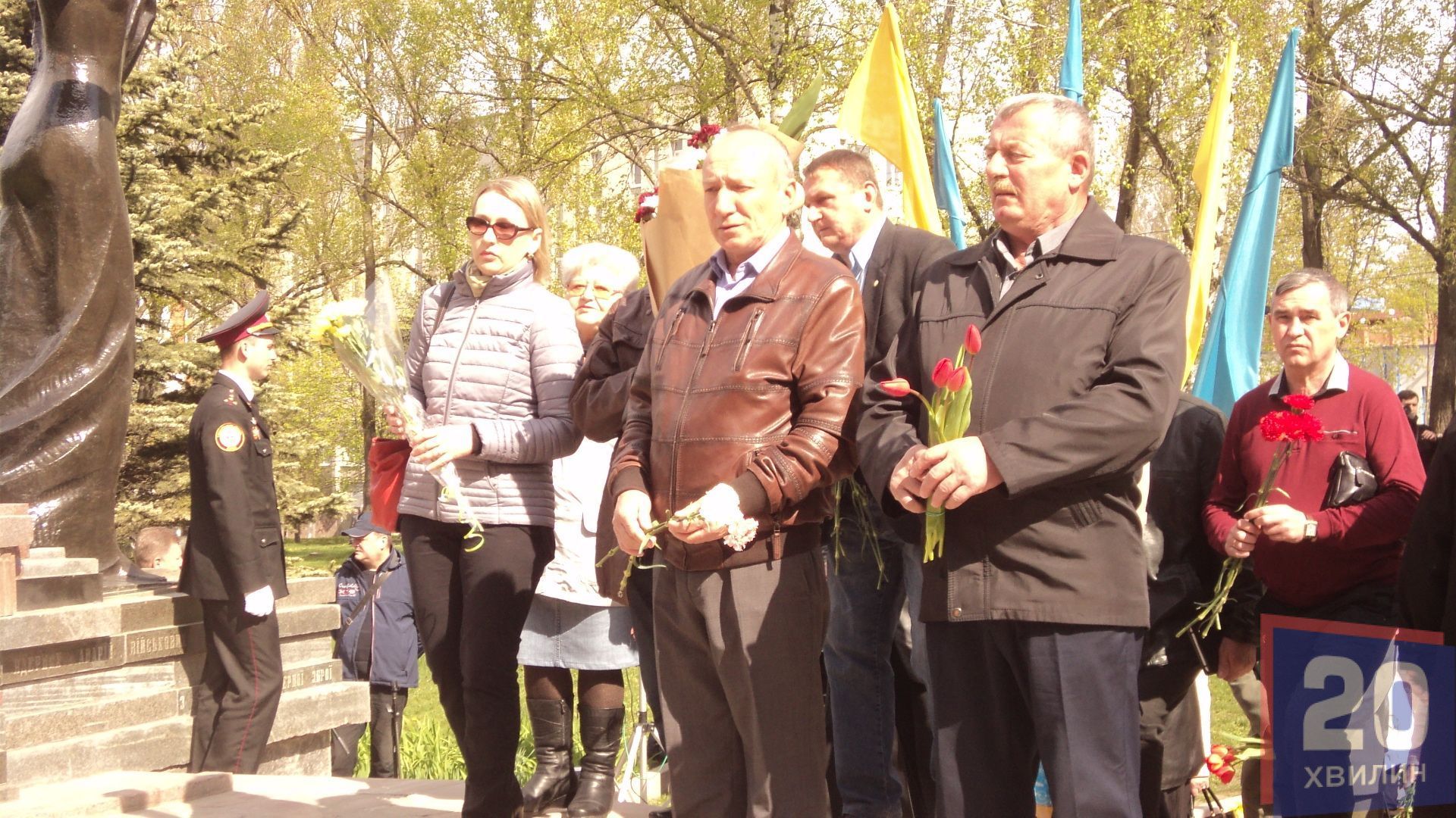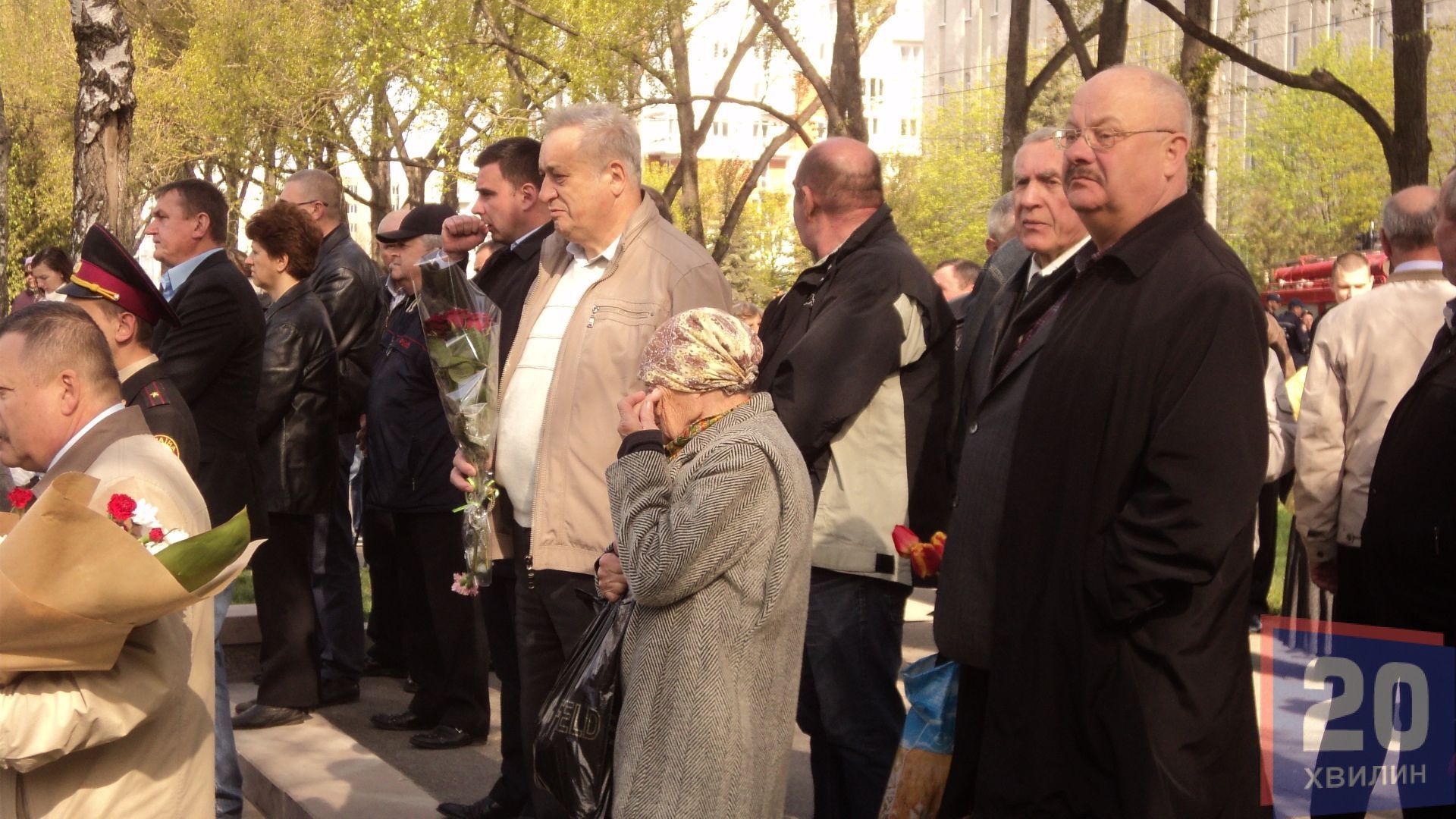 Ліквідатори, інваліди Чорнобиля прийшли, щоб пом'янути загиблих товаришів та родичів. Після молебну керівники міста і області, чорнобильці, працівники управління ДСНС поклали квіти до підніжжя меморіалу.