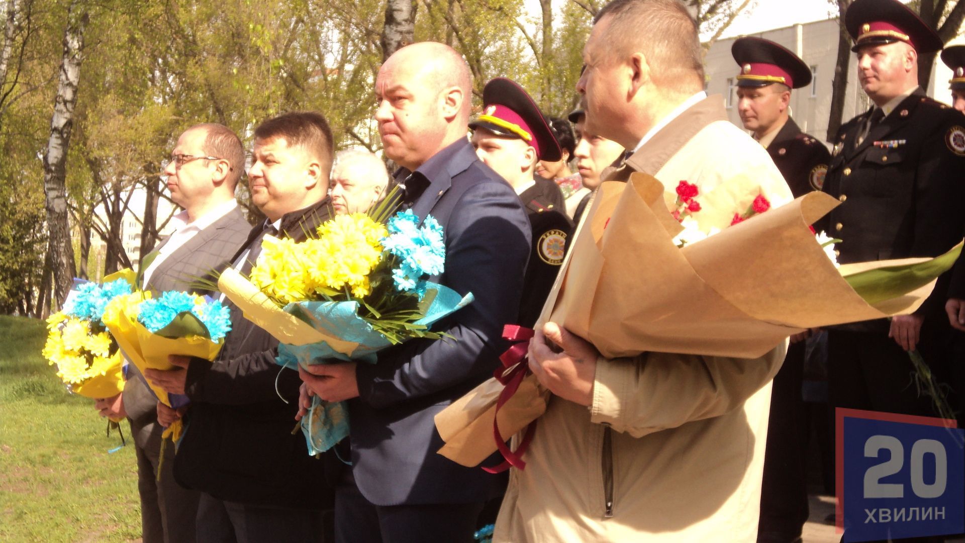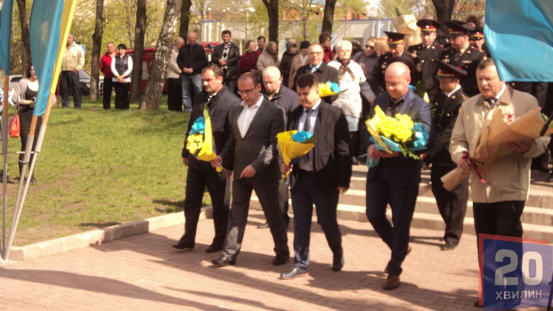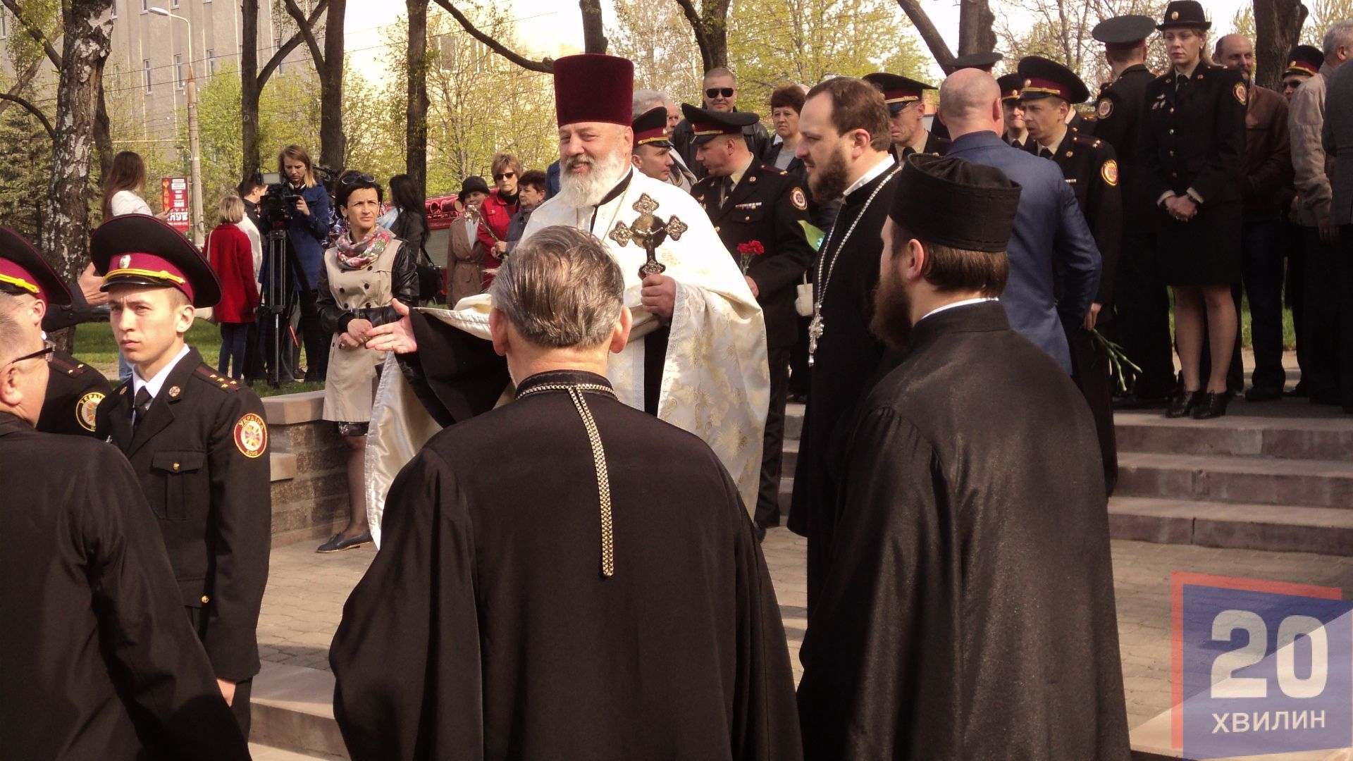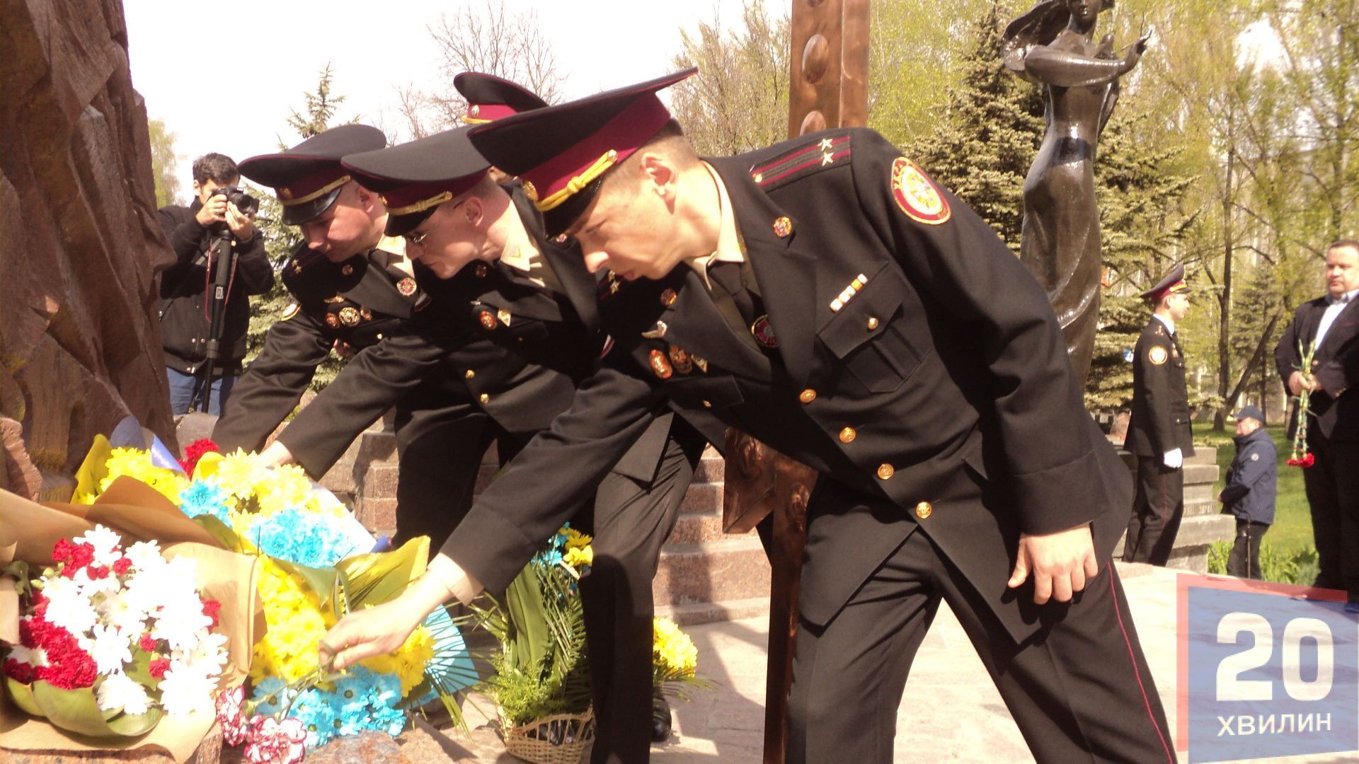 Ліквідатори, інваліди Чорнобиля прийшли, щоб пом'янути загиблих товаришів та родичів. Після молебну керівники міста і області, чорнобильці, працівники управління ДСНС поклали квіти до підніжжя меморіалу.
