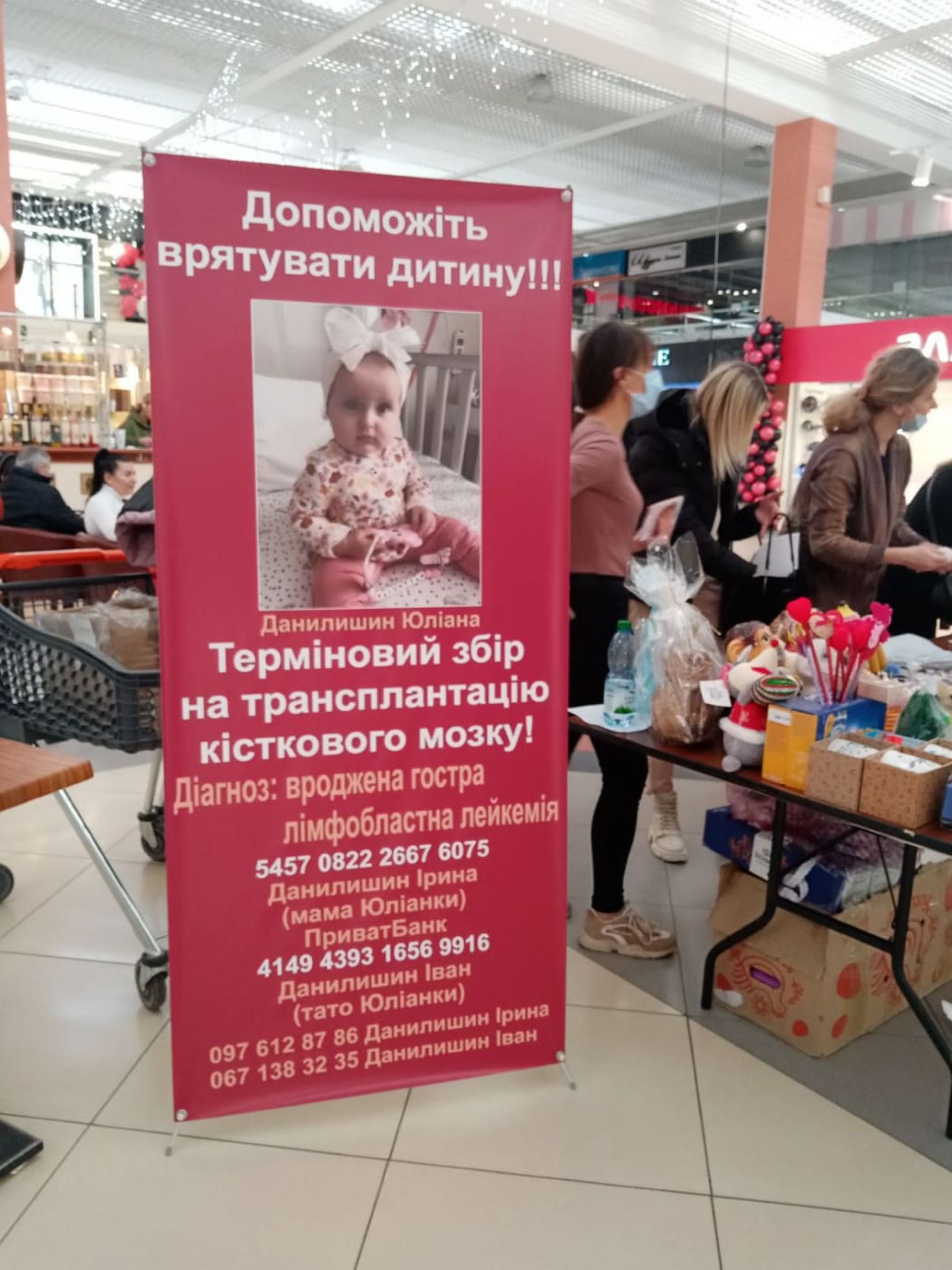 Під час благодійної ярмарки в найбільшому торговому центрі міста, люди могли придбати солодощі та роботи хенд-мейд майстрів. Усі виручені за продаж кошти передали батькам Юліанки Данилишин, яка потребує трансплантації кісткового мозку.