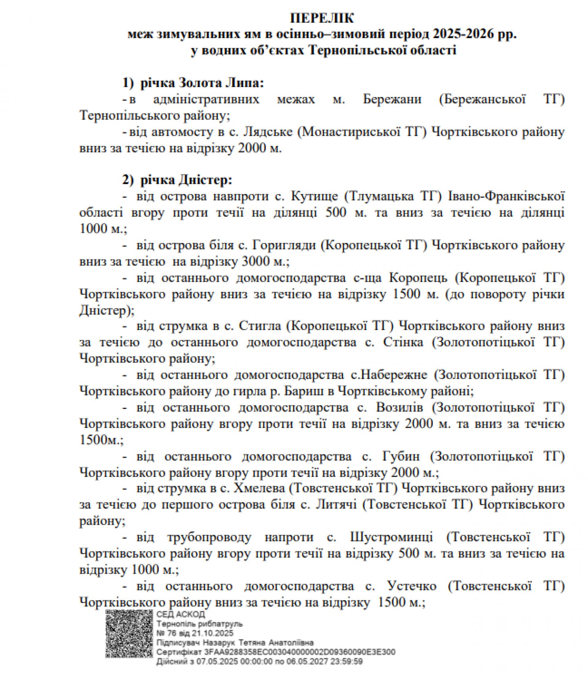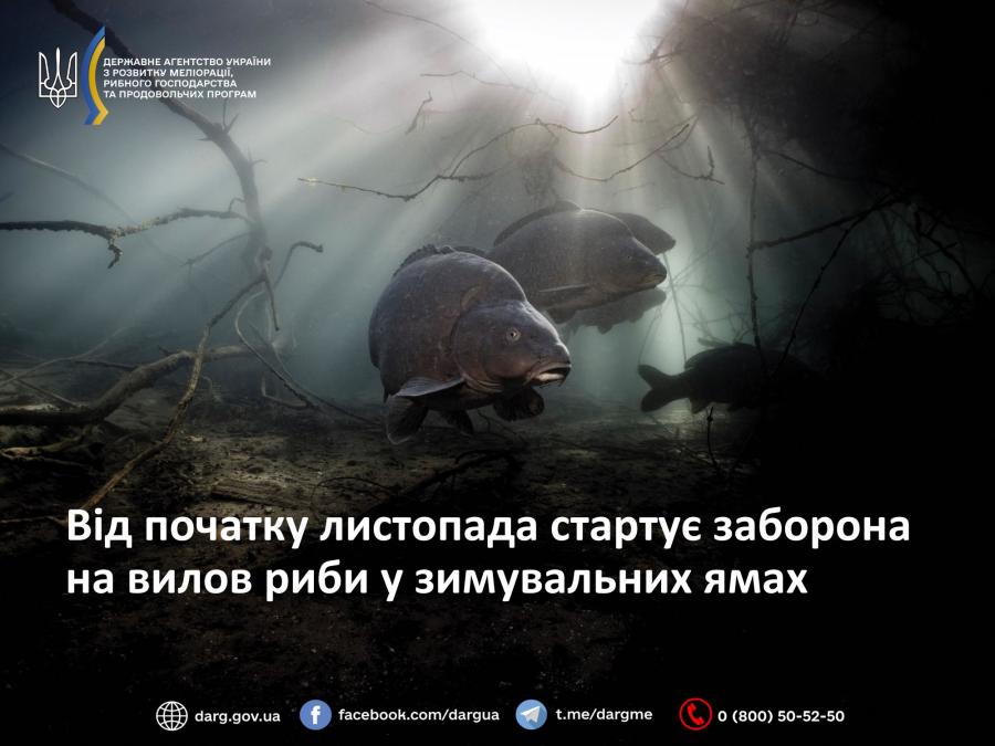 З 1 листопада в українських водоймах розпочинається осінньо-зимова заборона на вилов водних біоресурсів у зимувальних ямах, яка триватиме до початку нерестового періоду 2026 року.