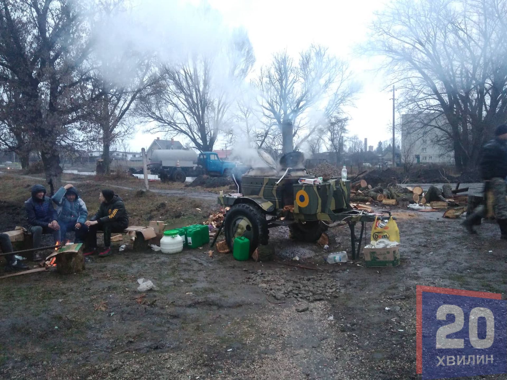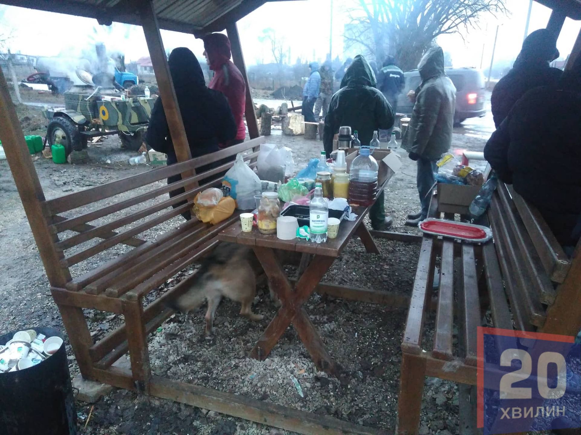 Коли люди почали виходити на імпровізований блокпост, вони не мали фактично нічого. Односельчани приносили їжу, хтось привіз дрова для того щоб грітися. Однак людей стало більше і хтось навіть організував польову кухню. Жителі сіл приносять їжу.