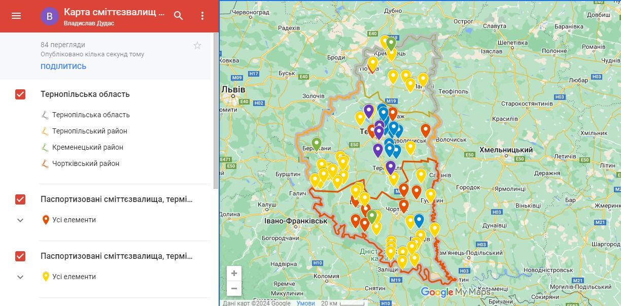 Управління екології та природних ресурсів спільно з департаментом цифрової трансформації обласної військової адміністрації розробили інтерактивну мапу сміттєзвалищ Тернопільської області.