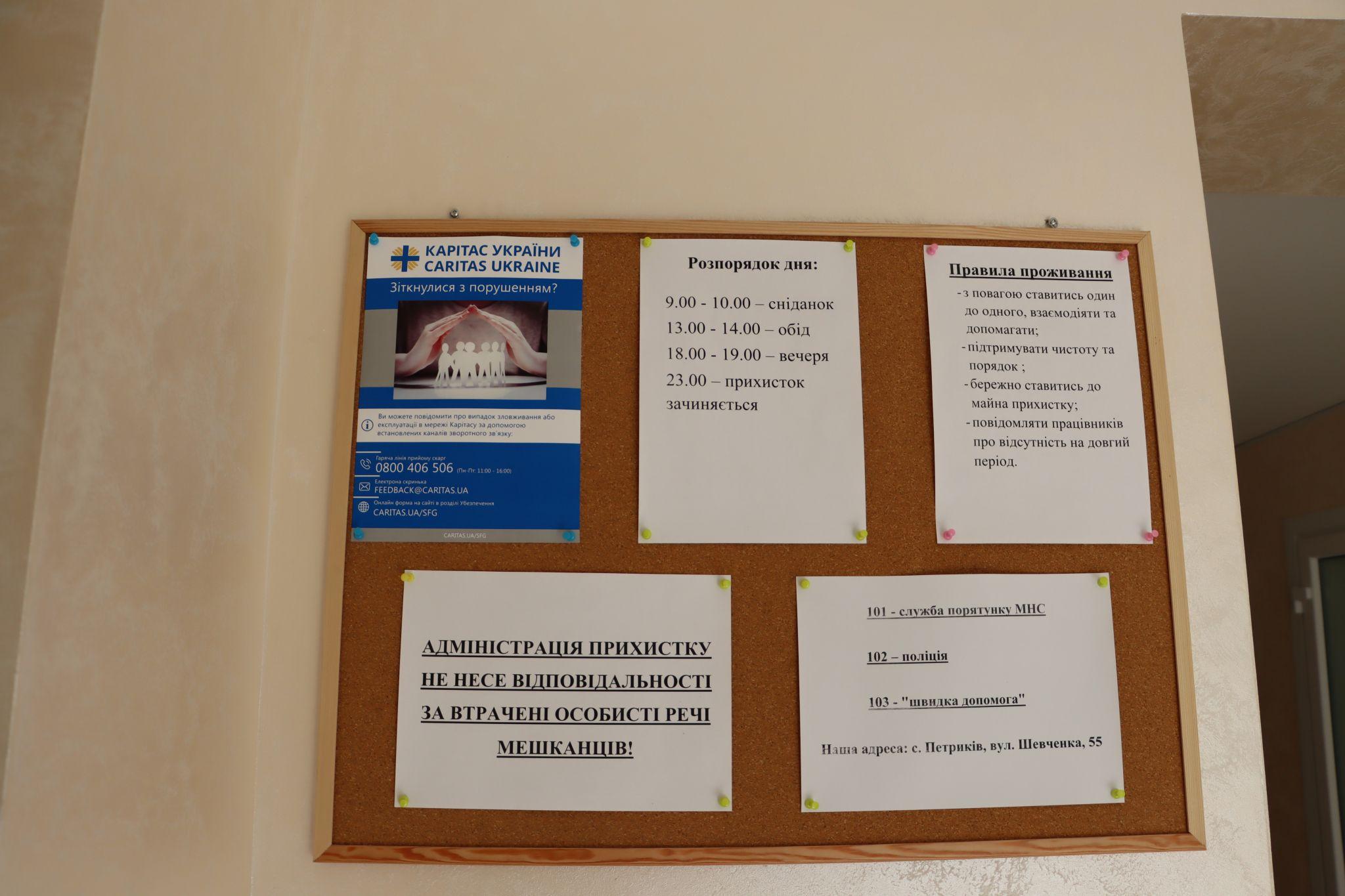 На вулиці Шевченка у Петрикові вже понад два місяці діє прихисток для літніх людей з-поміж числа внутрішньо переміщених осіб. Проєкт реалізував тернопільський осередок благодійного фонду «Карітас». Урочисте відкриття тимчасового житла для переселенців організували 3 жовтня.
