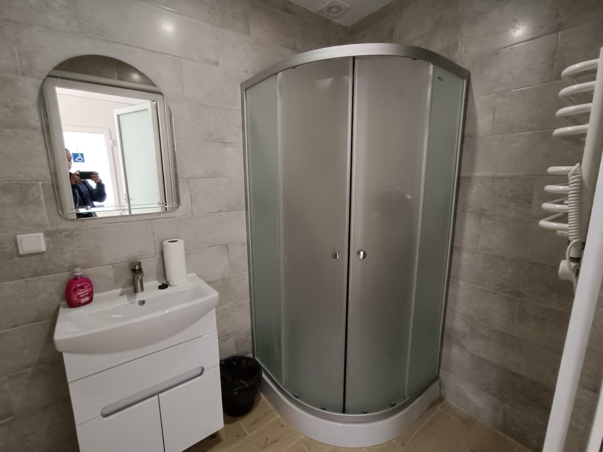 – Ми зробили капітальний ремонт усієї будівлі. Зараз обжитими є три поверхи. Кімнати дво-, три- та чотиримісні. У кожній є окремий санвузол з умивальником, душовою кабіною і туалетом. Крім того, маємо загальну пральню, де люди можуть привести до ладу одяг, і їдальню, – каже Олена Деркач.