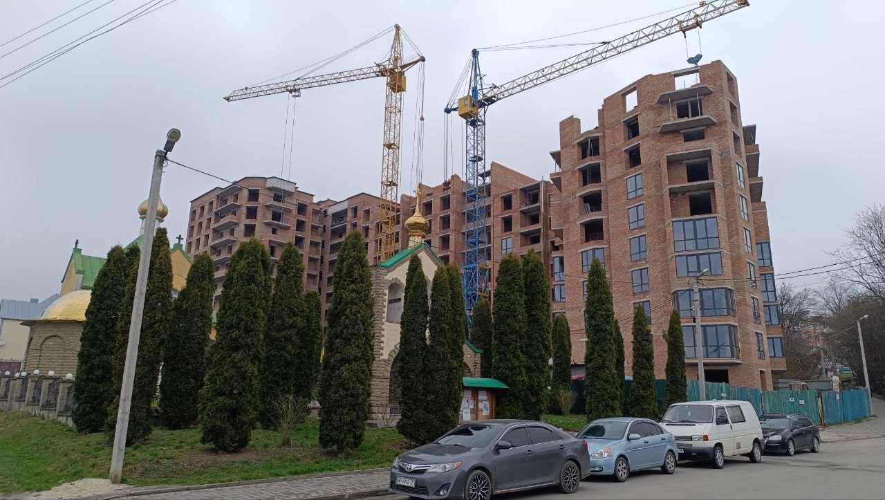 Станом на 31 березня, як переконалися журналісти «20 хвилин», будівництво триває. У будинку вже частково встановили вікна.