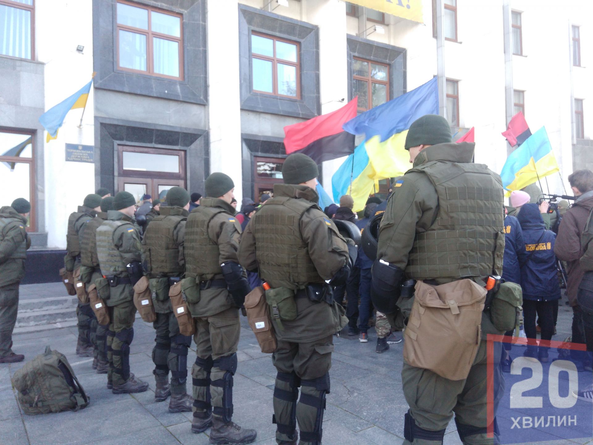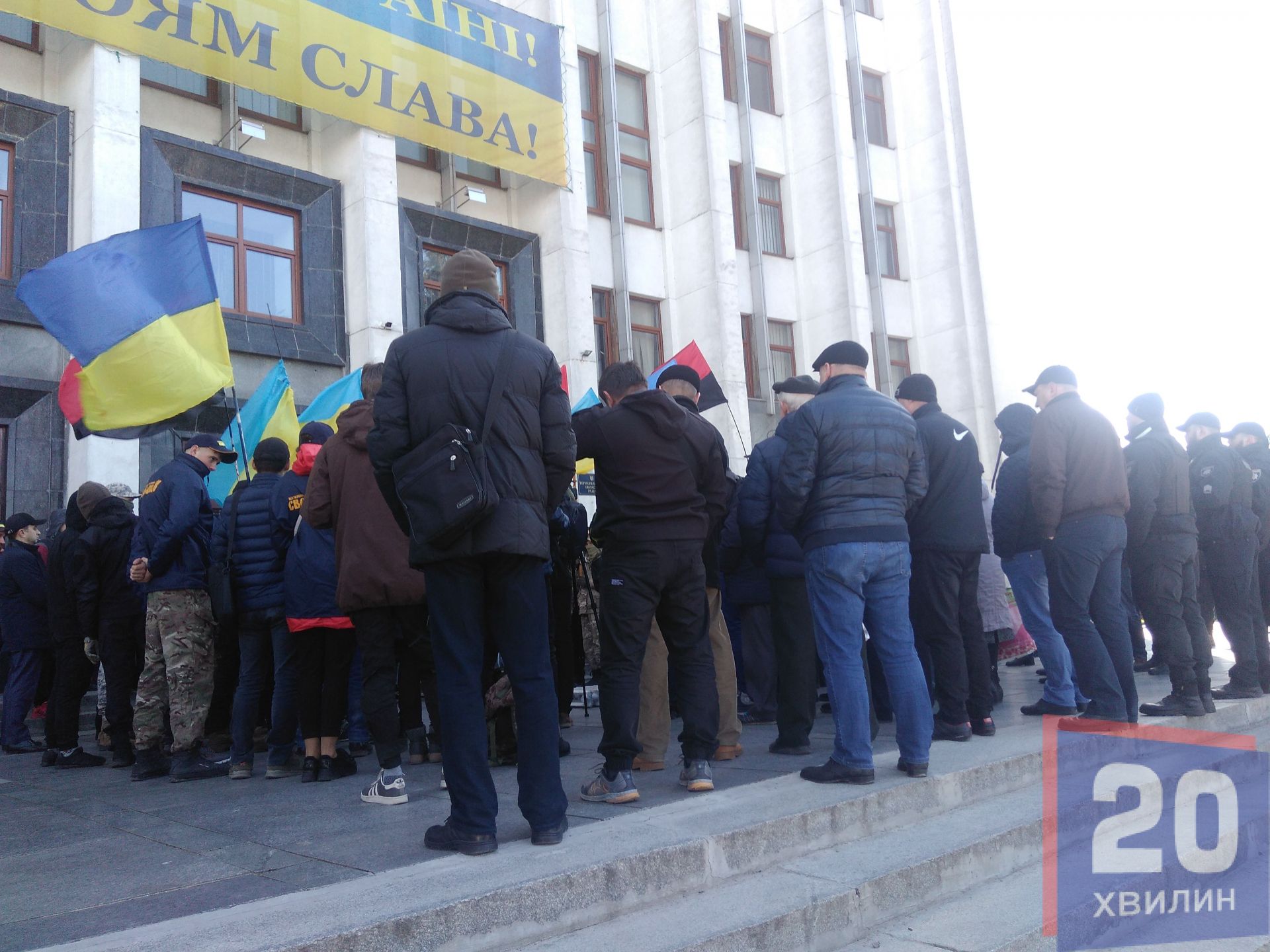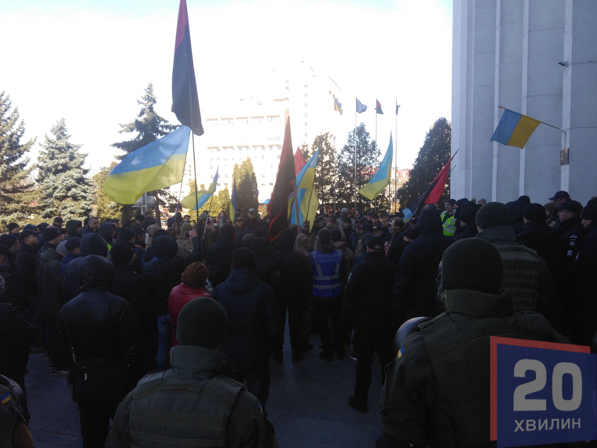 Протестувальники тримали у руках плакати «Росія – агресор», «2014 – можемо повторити», тощо. Протестувальники принесли до обласної адміністрації принесли шини та попередили поліцію, що якщо правоохоронці будуть виступати проти мітингарів – вони виступатимуть проти державних інтересів. Протестувальники також закликали усіх не чинити провокацій, щоб у російських ЗМІ не було «картинки» на екранах про безлад в Україні.