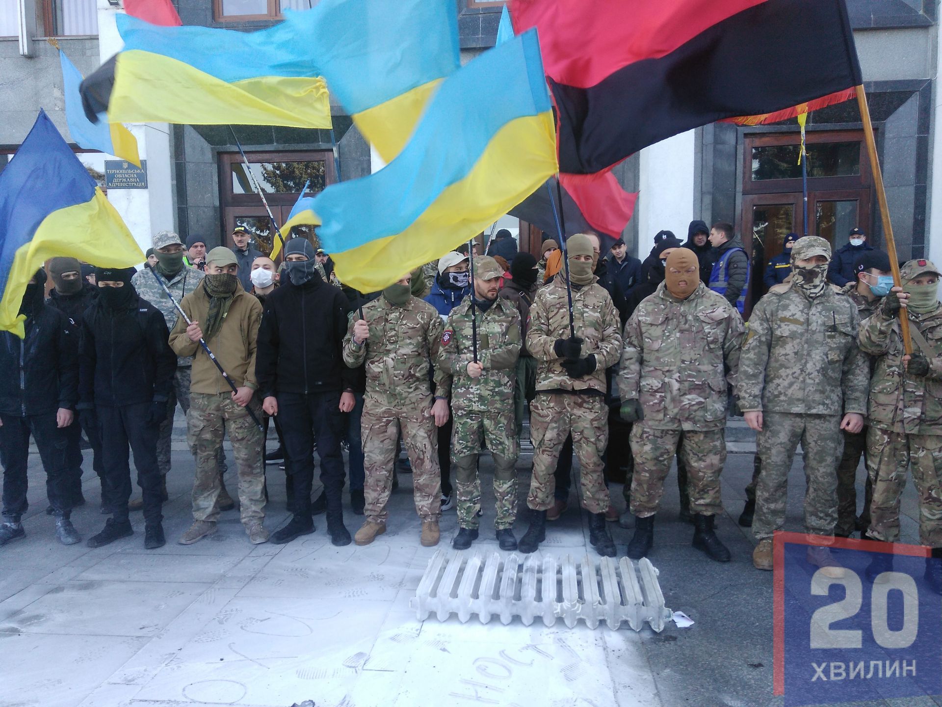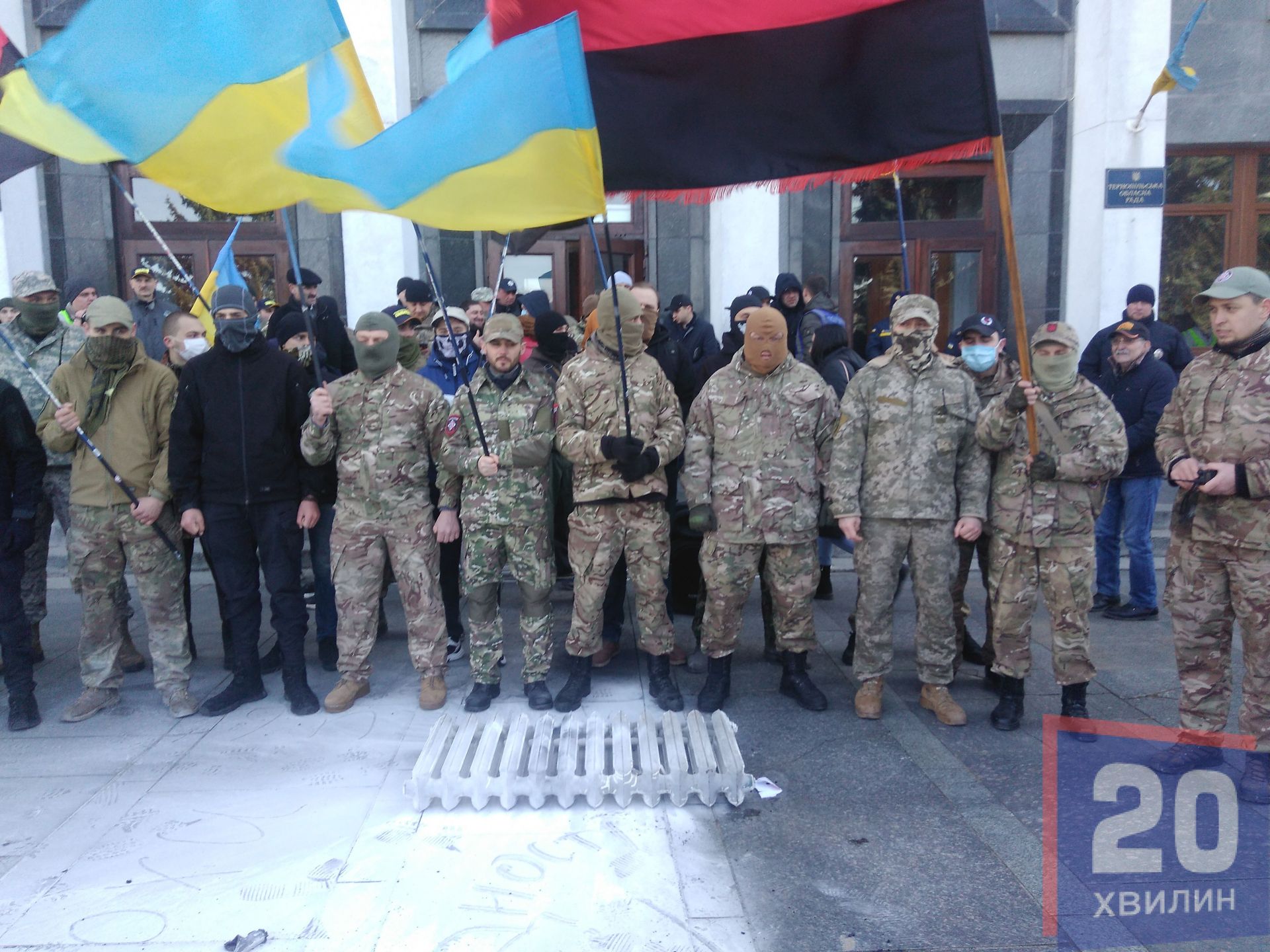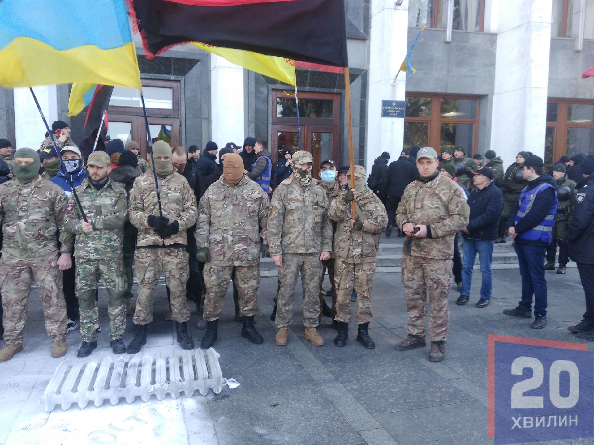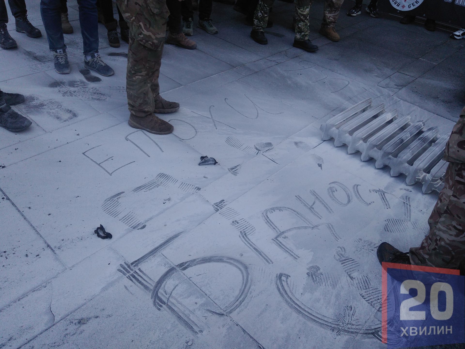 До протестувальників вийшли представники обласної ради, які підтримали людей. Активісти вимагали у депутатів обласної ради висловити недовіру Кучмі, Єрмаку та президенту Зеленському. Також активісти вимагали ініціювати провадження стосовно державної зради.