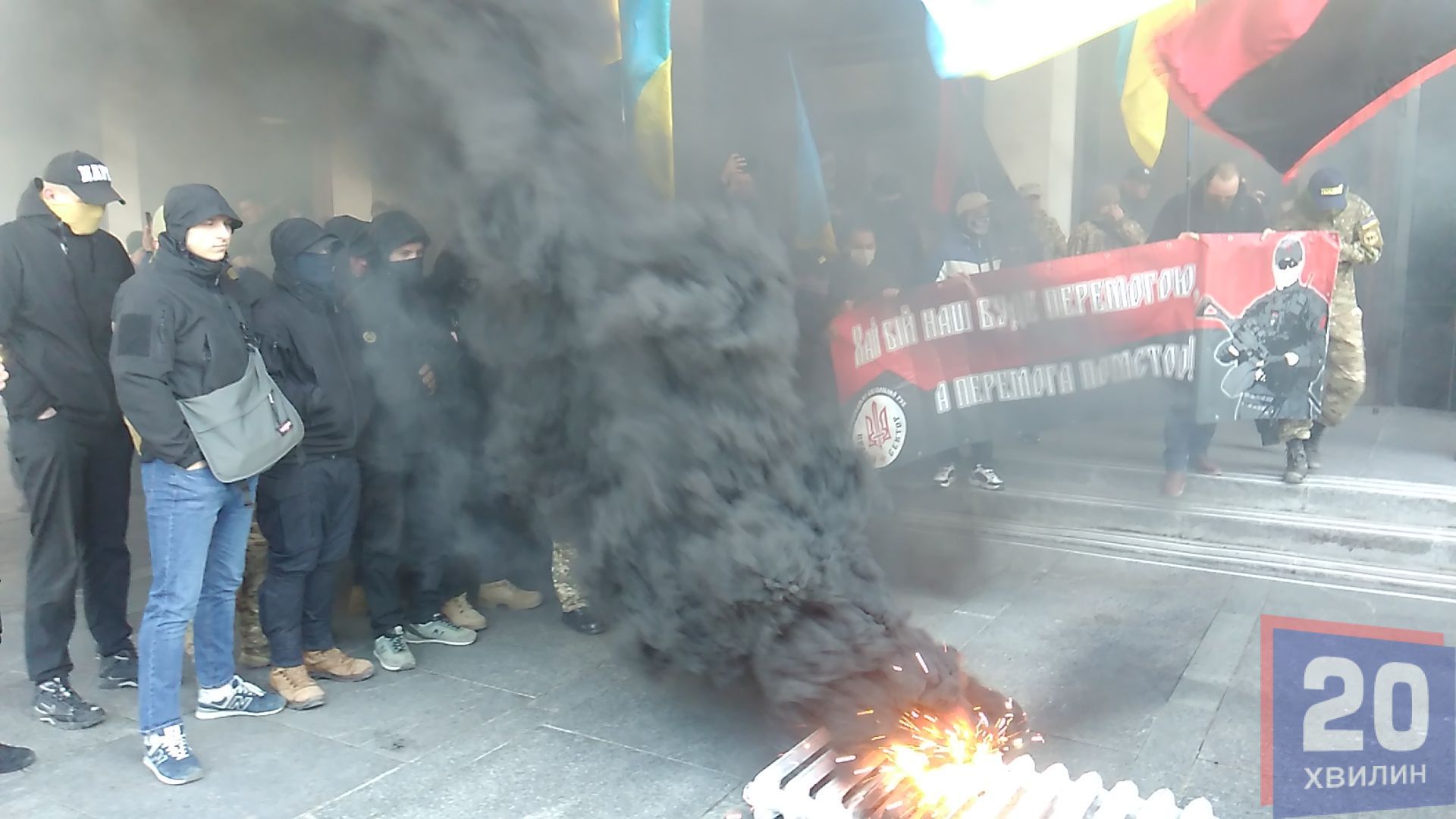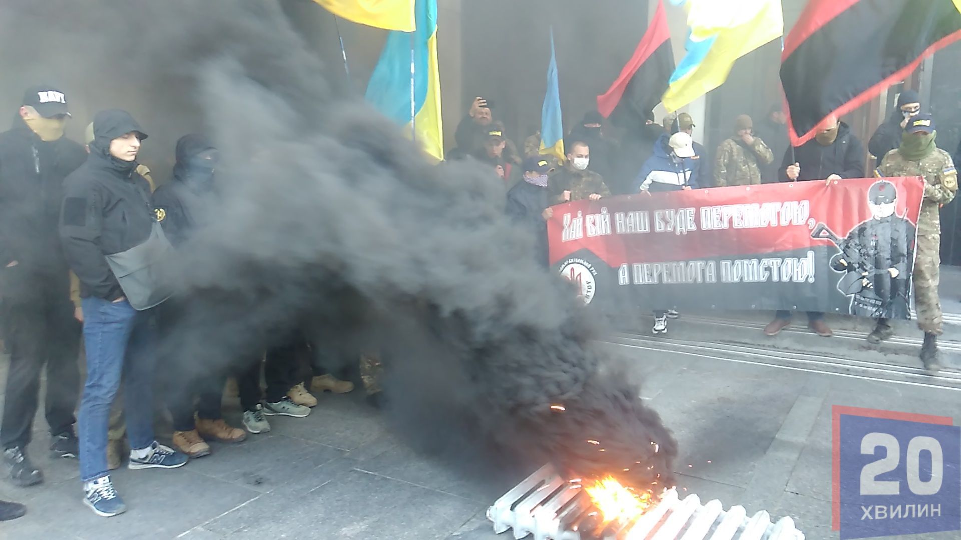 Протестувальники шини все ж не запалювали, однак запалили димову шашку. Нових сутичок з поліцією вдалось уникнути. Гасити димову шашку довелося пожежникам.