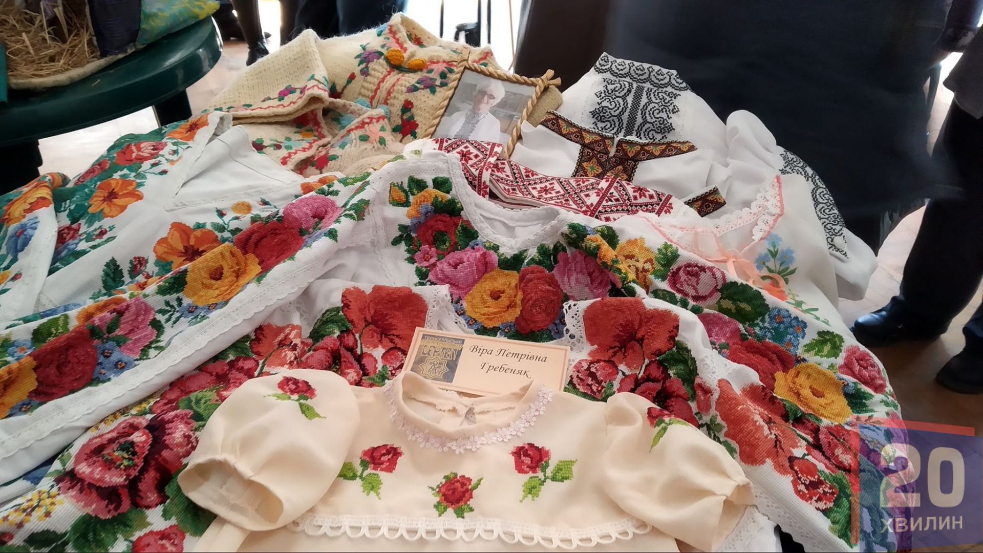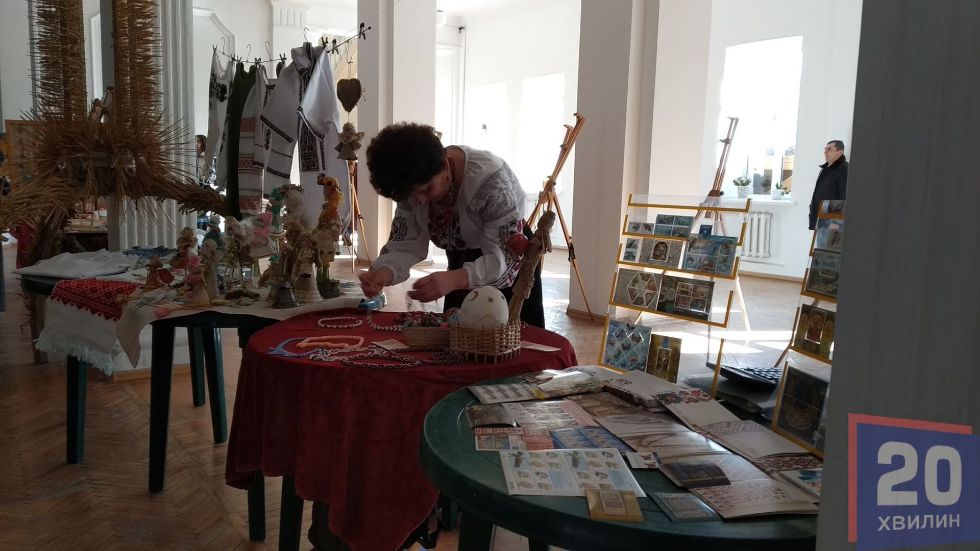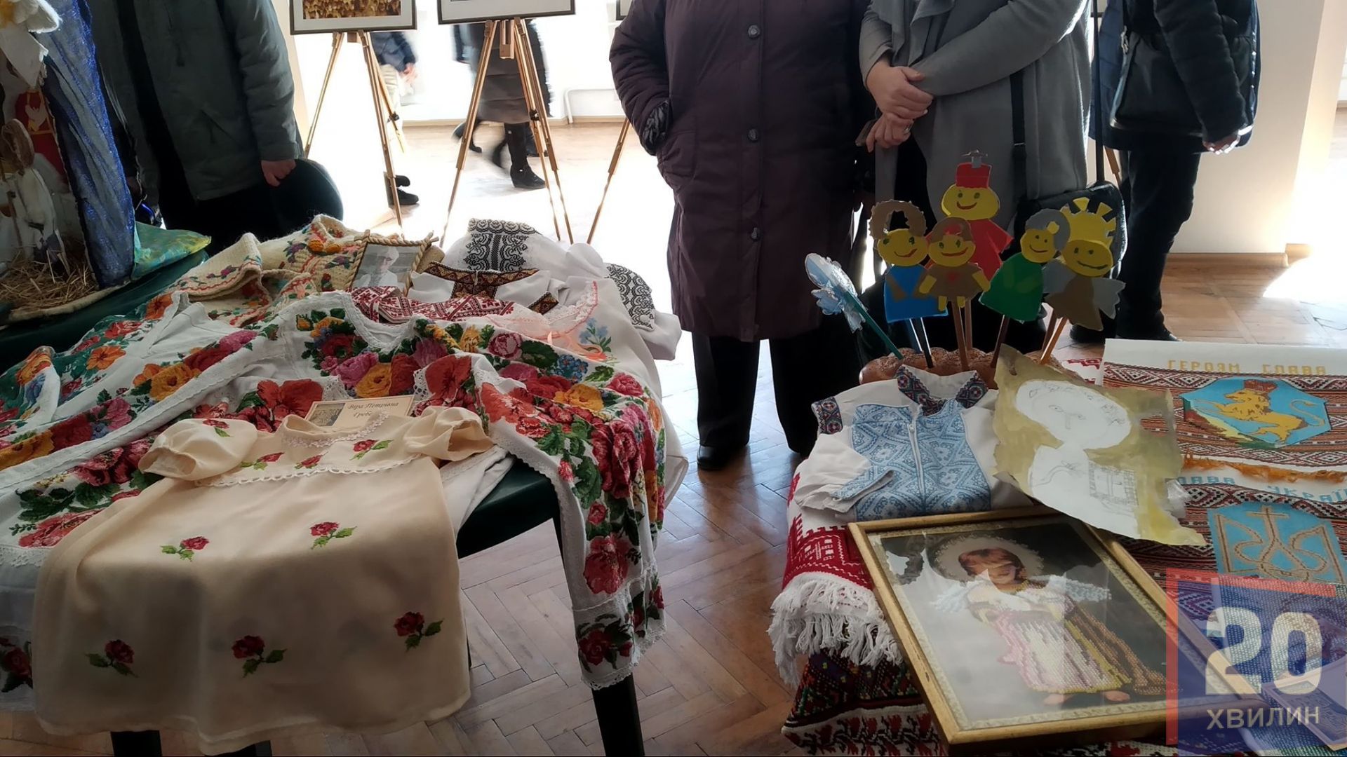 У холі Ураїнського дому "Перемога" - виставка виробів народних умільців. Свої вишиванки на виставці представила Віра Гребеняк. Вона - мати одного із хлопців, які започаткували товариство. На сьогоднішнє свято жінка сеціально для онучки вишила нову сорочку.