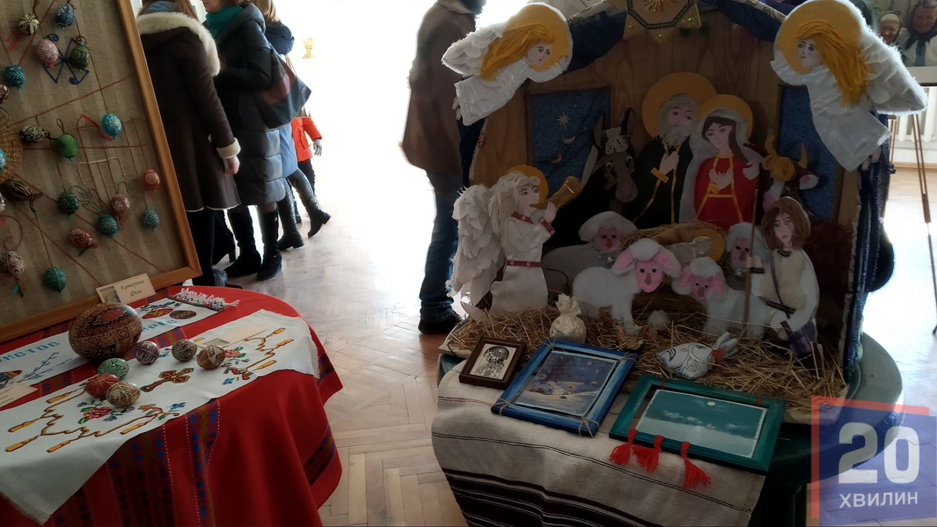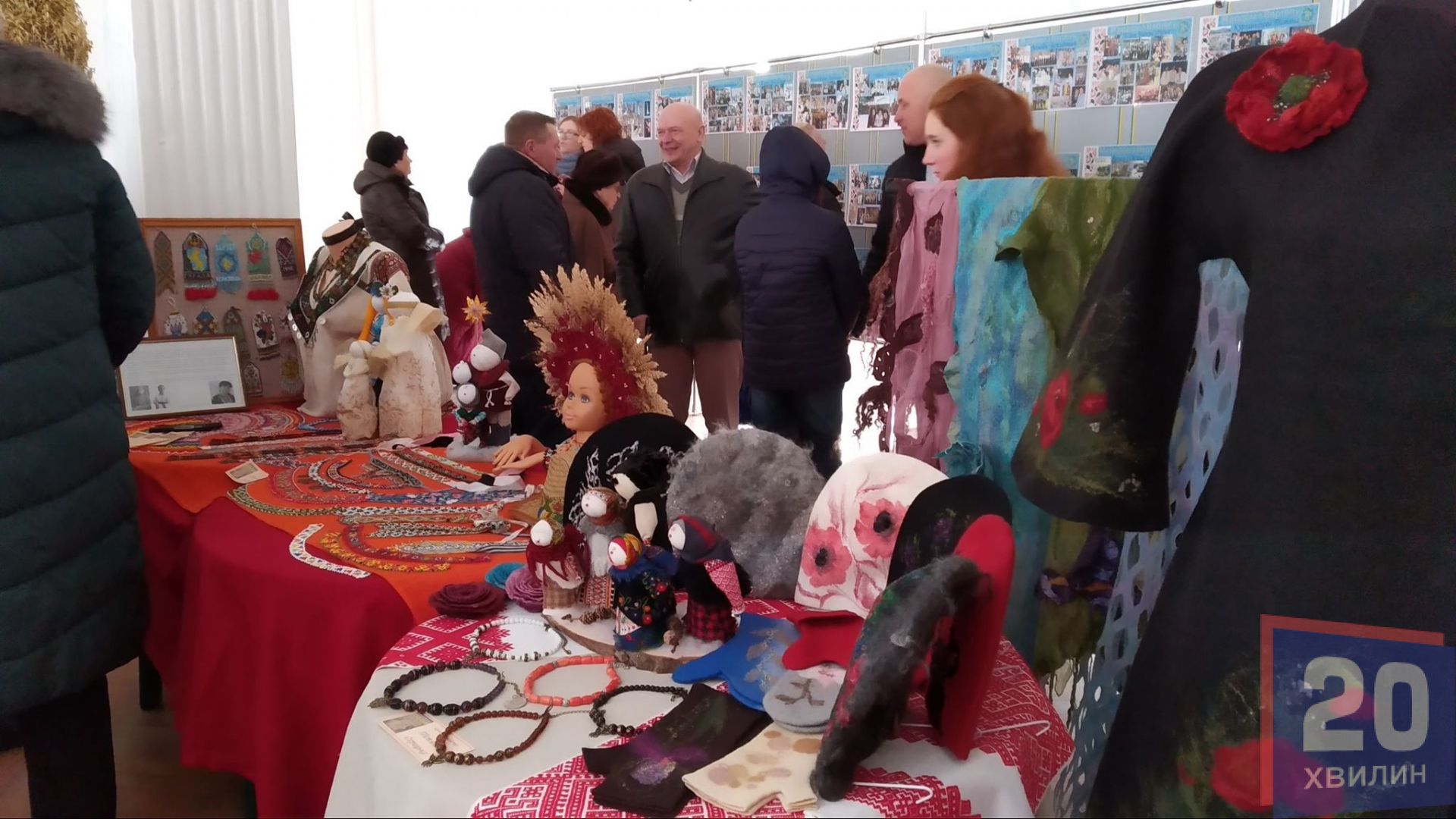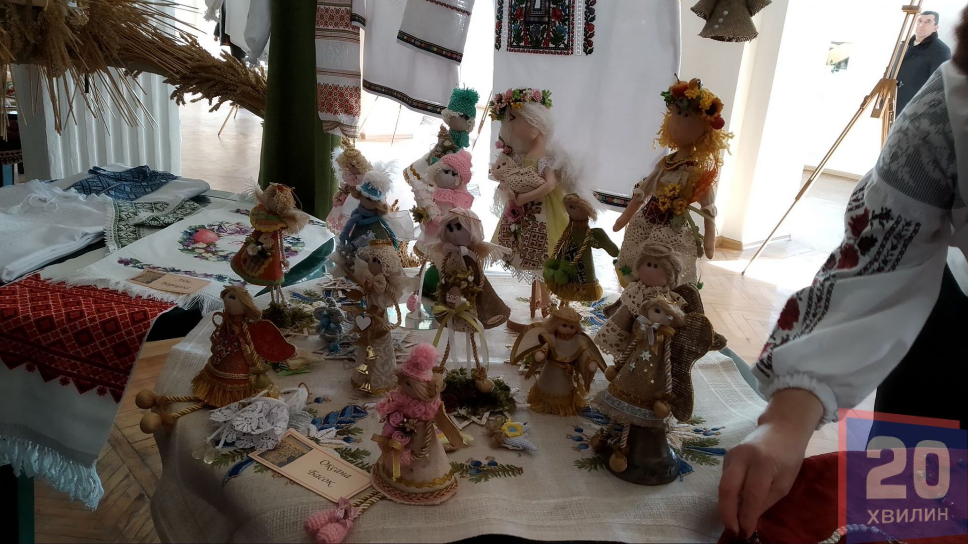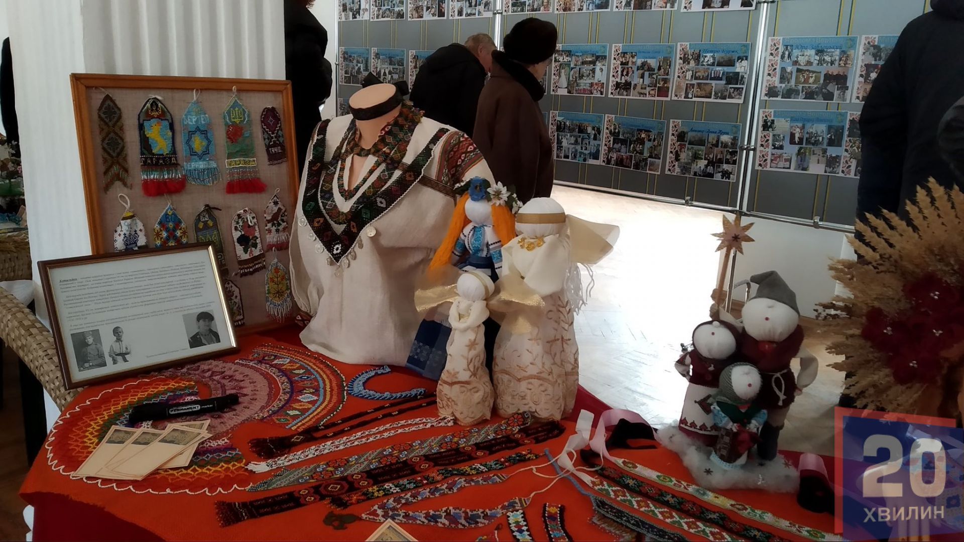 У холі Ураїнського дому "Перемога" - виставка виробів народних умільців. Свої вишиванки на виставці представила Віра Гребеняк. Вона - мати одного із хлопців, які започаткували товариство. На сьогоднішнє свято жінка сеціально для онучки вишила нову сорочку.