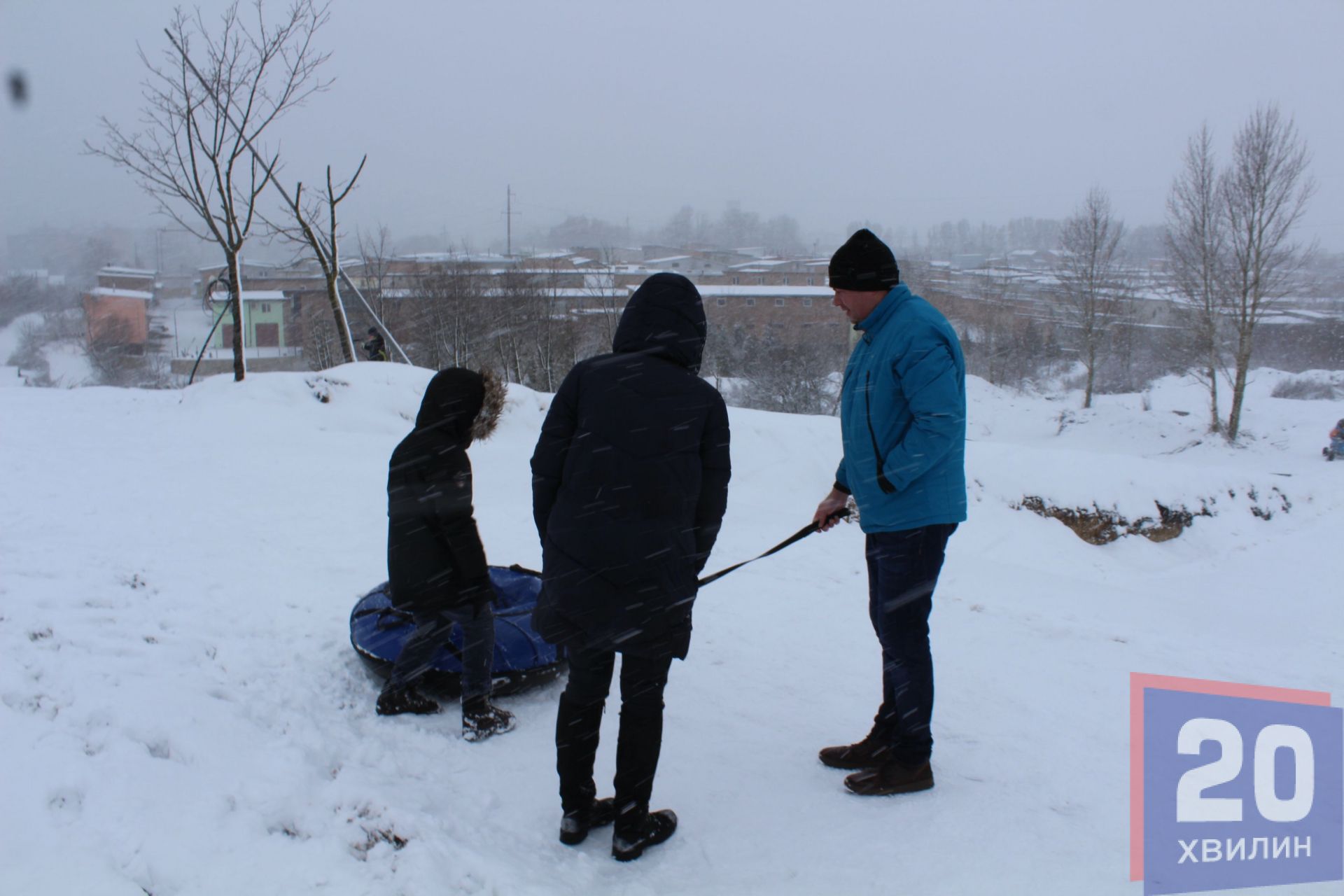 На чому будуть спускатися з гірки ще обирають. Віталій Кирилов каже, що можливо це будуть тюби, можливо – клейонка, а можливо обидва цих варіанти. Це будуть вирішувати зважаючи на кількість охочих.