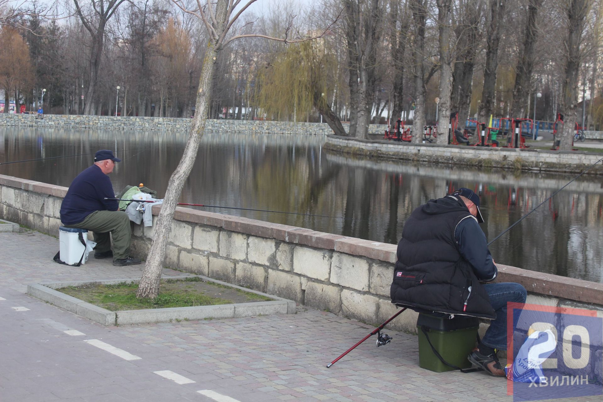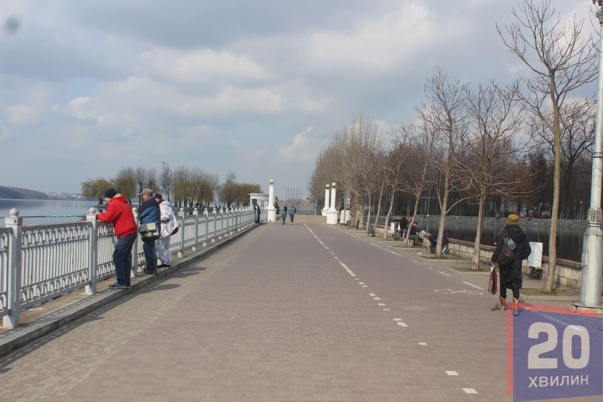 Центр міста малолюдний , як і парки та набережна Тернопільського ставу. А от кількість рибалок не зменшилася і їх можна побачити практично вздовж всієї прибережної зони ставу.