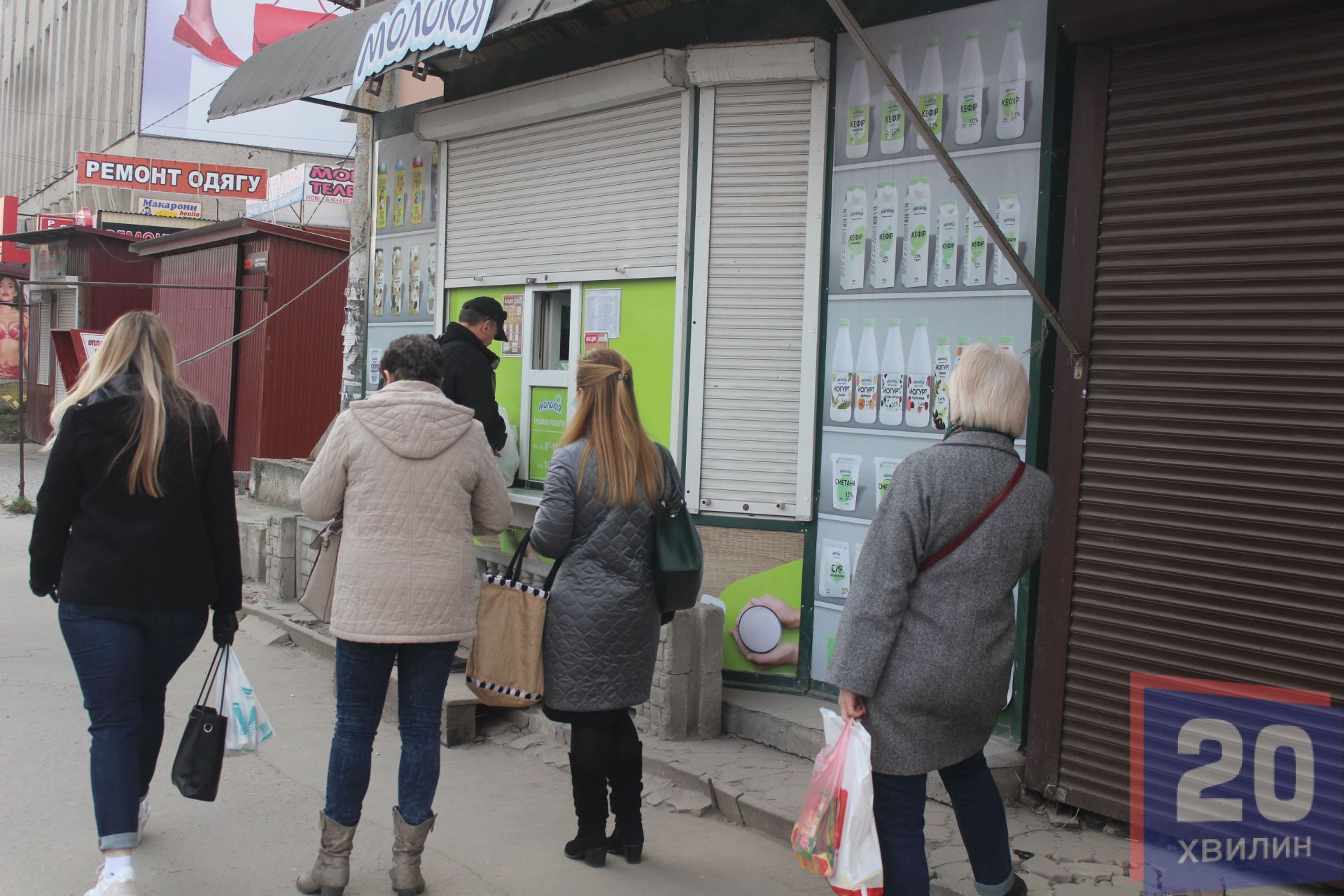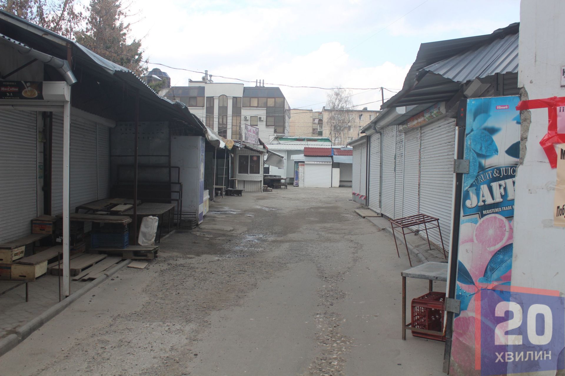 Ринки не працюють, однак деякі магазини на території Центрального ринку все ж працюють – магазин з насінням, з товарами з-за кордону, з побутовою хімією та кілька аптек. Люди самі організовують черги, зберігають дистанцію. Черги можуть тягнутися кілька метрів. Ніхто ризикувати не хоче, тому дотримуються безпечної відстані.