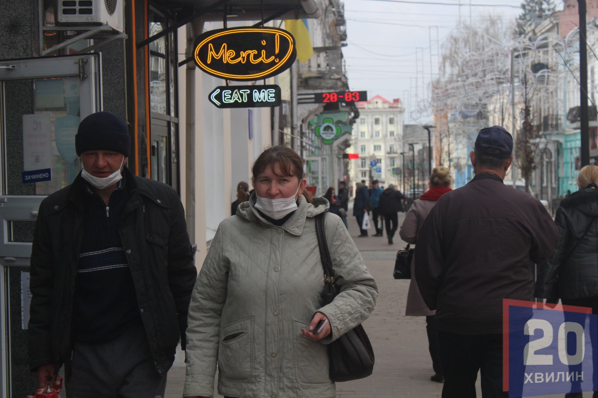 Тернопіль виглядає напівспустошеним через те, що багато закладів закриті і людям просто нікуди піти. Проте ті тернополяни, які все ж вийшли на вулицю, прогулюються містом. Багато людей одягнули маски. Хтось одягнув хірургічні або марлеві маски, а декому вдалось роздобути респіраторні напівмаски. Лікарі зауважують, що звичайна хірургічна маска не зможе захистити вас, вона лише дає ілюзію захищеності. Її варто одягати лише тоді, коли ви можете бути носієм хвороби, щоб не розповсюджувати інфекцію.