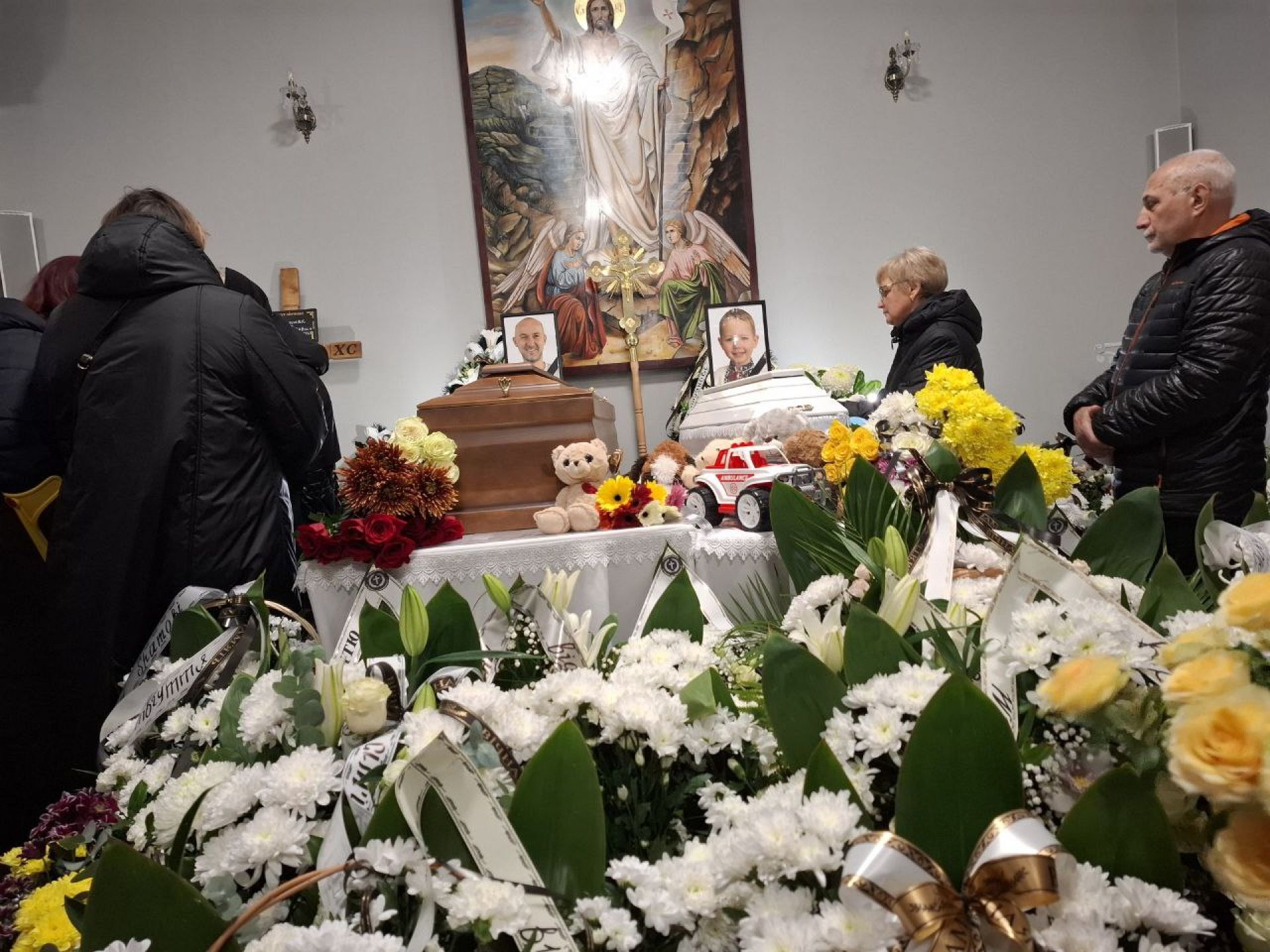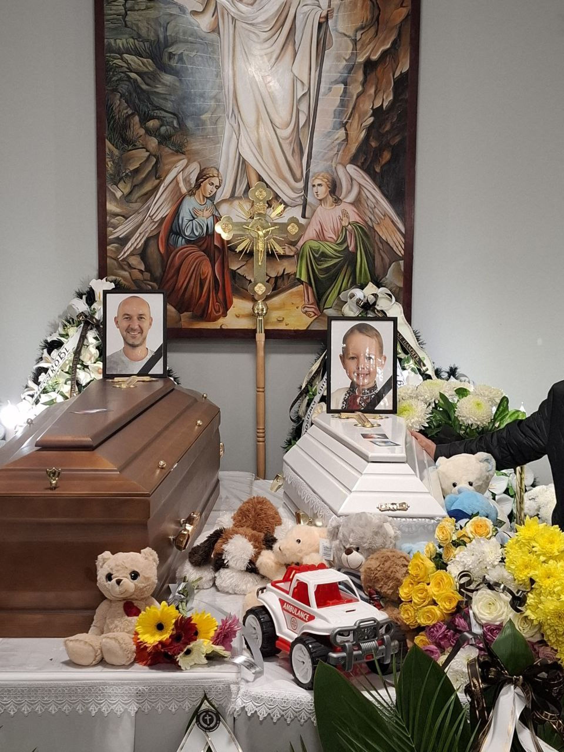 Каплиця Церкви Матері Божої Неустанної Помочі, що на бульварі Д. Галицького, де 26 листопада проходить панахида за загиблими, тоне у квітах. Поруч із трунами батька й сина їхній портрет. На них хлопці, як завжди, сміються. Очі Віталика теплі, а малюк, як і в житті, міцно-міцно обіймає татуся за шию. У цих двох, кажуть рідні, був особливий зв’язок.