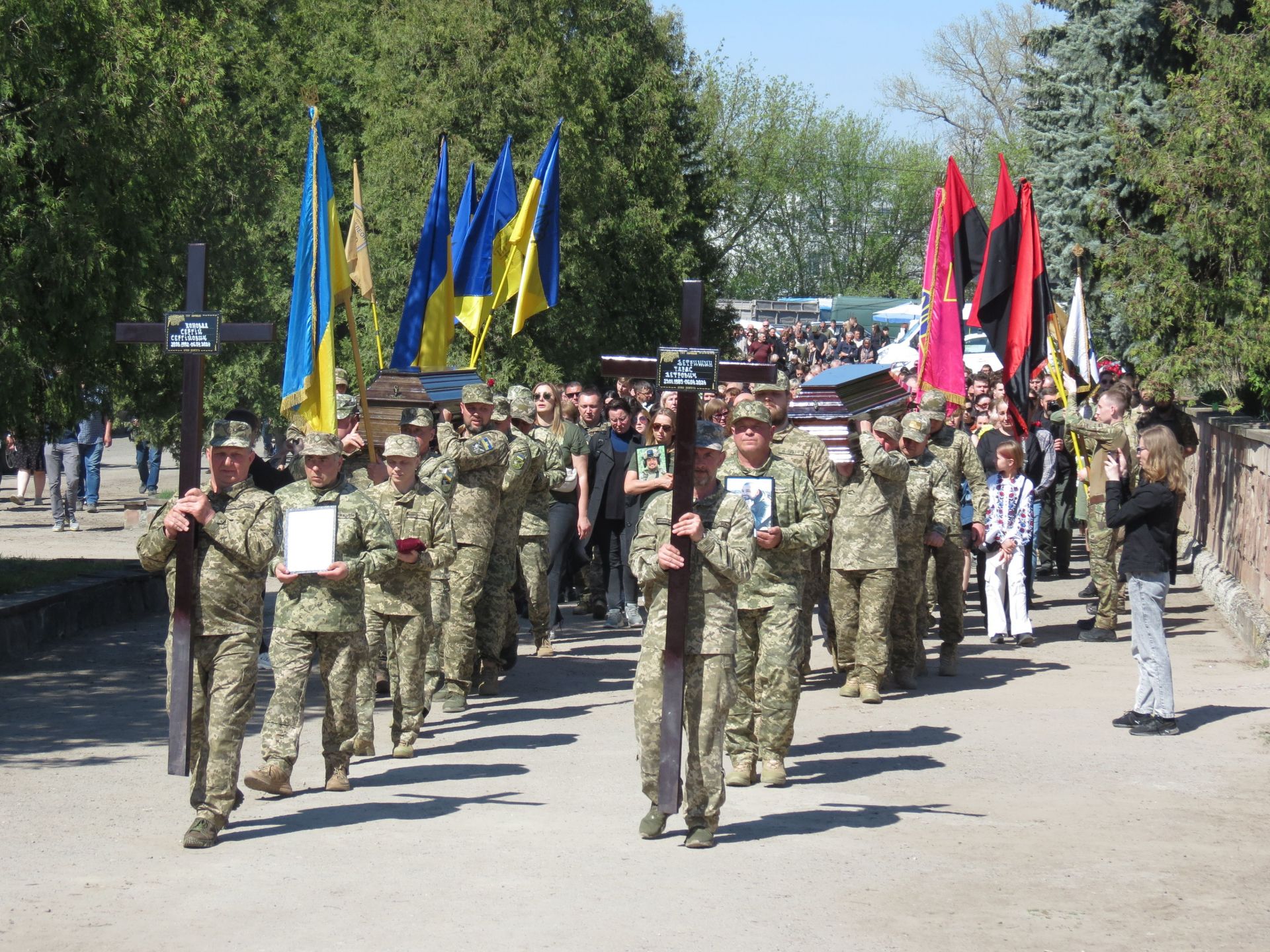 Тернополяни прощаються із загибими Героями. Захисники боронили Україну ще з 2014 року. Разом загинули 6 квітня 2024 року на Донеччині.