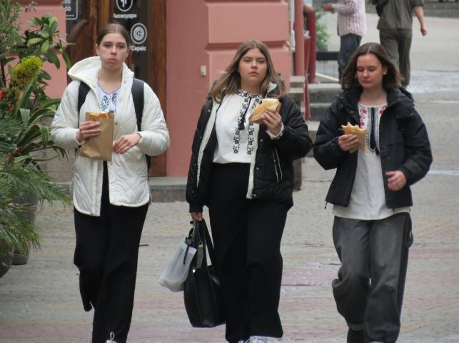 Незважаючи на пасмурну погоду та дощ, багато людей одягнули вишиванку. Тернополяни йдуть на навчання чи роботу або просто прогулюються містом у вишитих сорочках та сукнях. Дивіться фото!