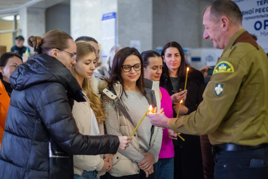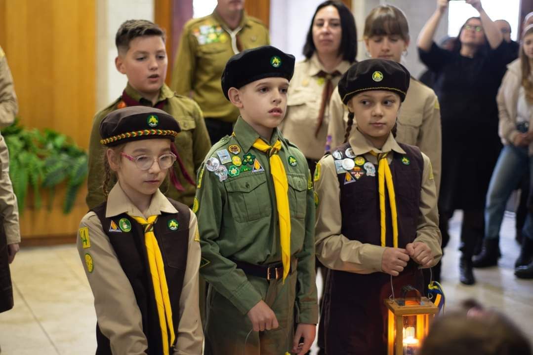 Представники Тернопільського осередку Національної скаутської організації «Пласт» урочисто передали Вифлеємський вогонь начальнику Тернопільської ОВА Володимиру Трушу в «Пункті незламності», який розташований в приміщені обласної військової адміністрації.