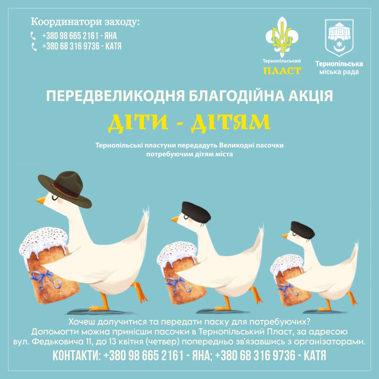 Принести паску потребуючим до Великодня закликають тернопільські пластуни. Вони почали передвеликодню благодійну акцію «Діти — дітям».