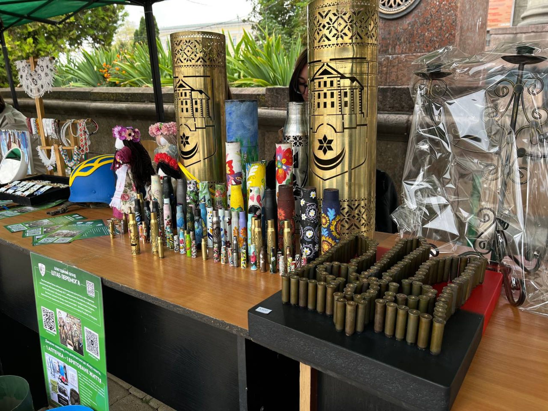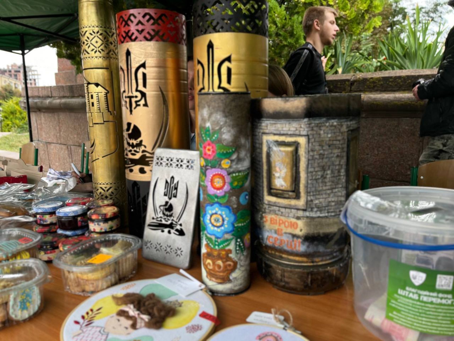 На ярмарку представили різноманітні домашні смаколики, прикраси, українські ляльки, витвори мистецтва та розмальовані майстрами військові трофеї.