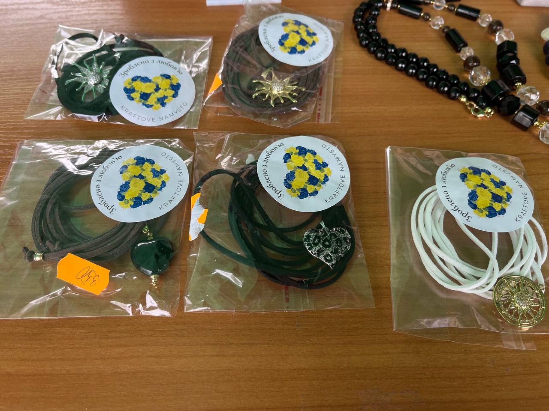 І все за символічними цінами. Наприклад, картина з бісеру коштує 1500 гривень, ляльки — 2000-2500 гривень, ціни на прикраси стартують від 50 гривень.