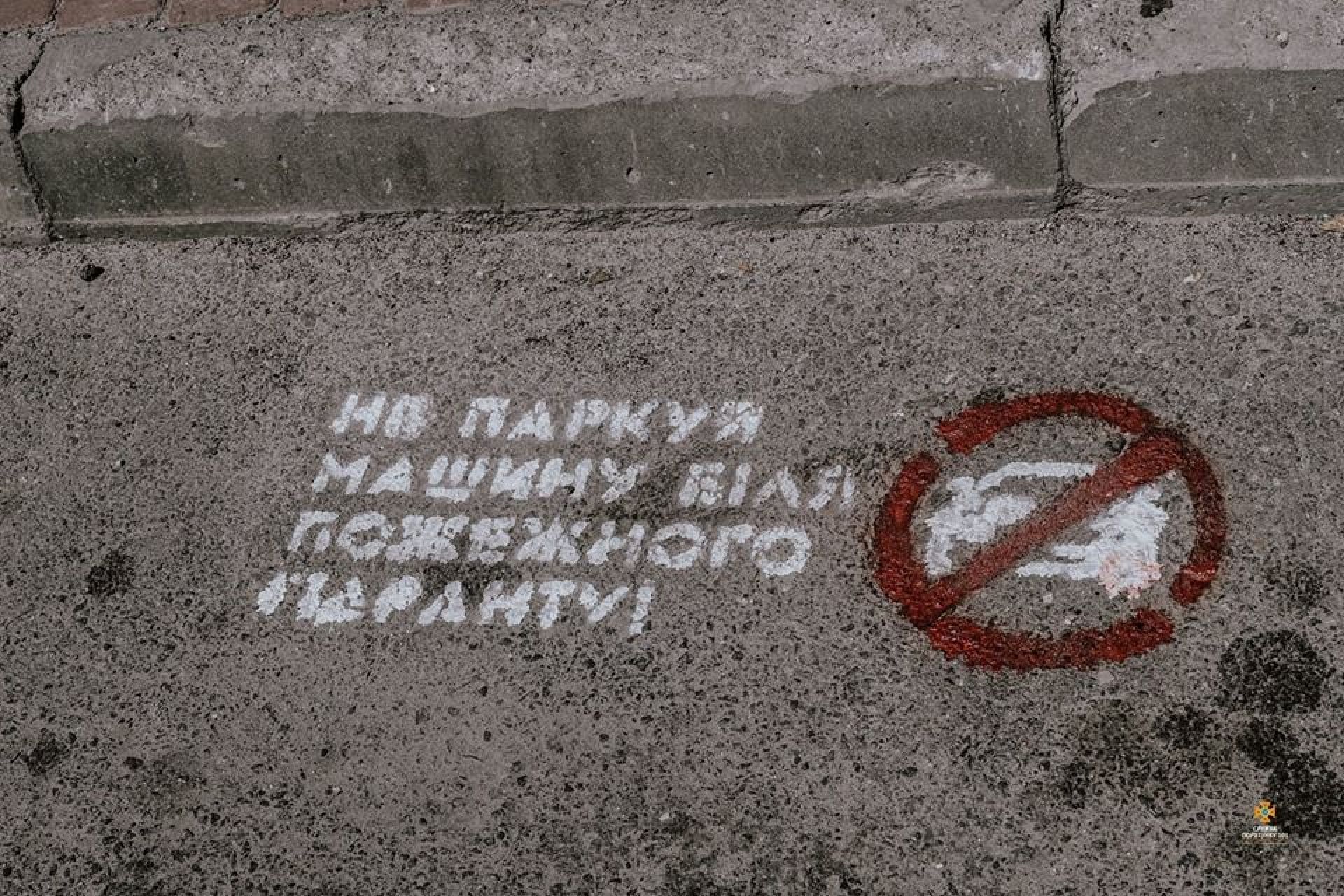 Рятувальники нанесли на тротуарах поблизу гідрантів написи із забороною паркуватися: «Не паркуй машину біля пожежного гідранту», повідомляє прес-служба управління ДСНС в Тернопільській області.