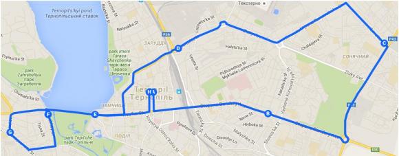 H - Кінець маршруту (бульв. Т. Шевченка).