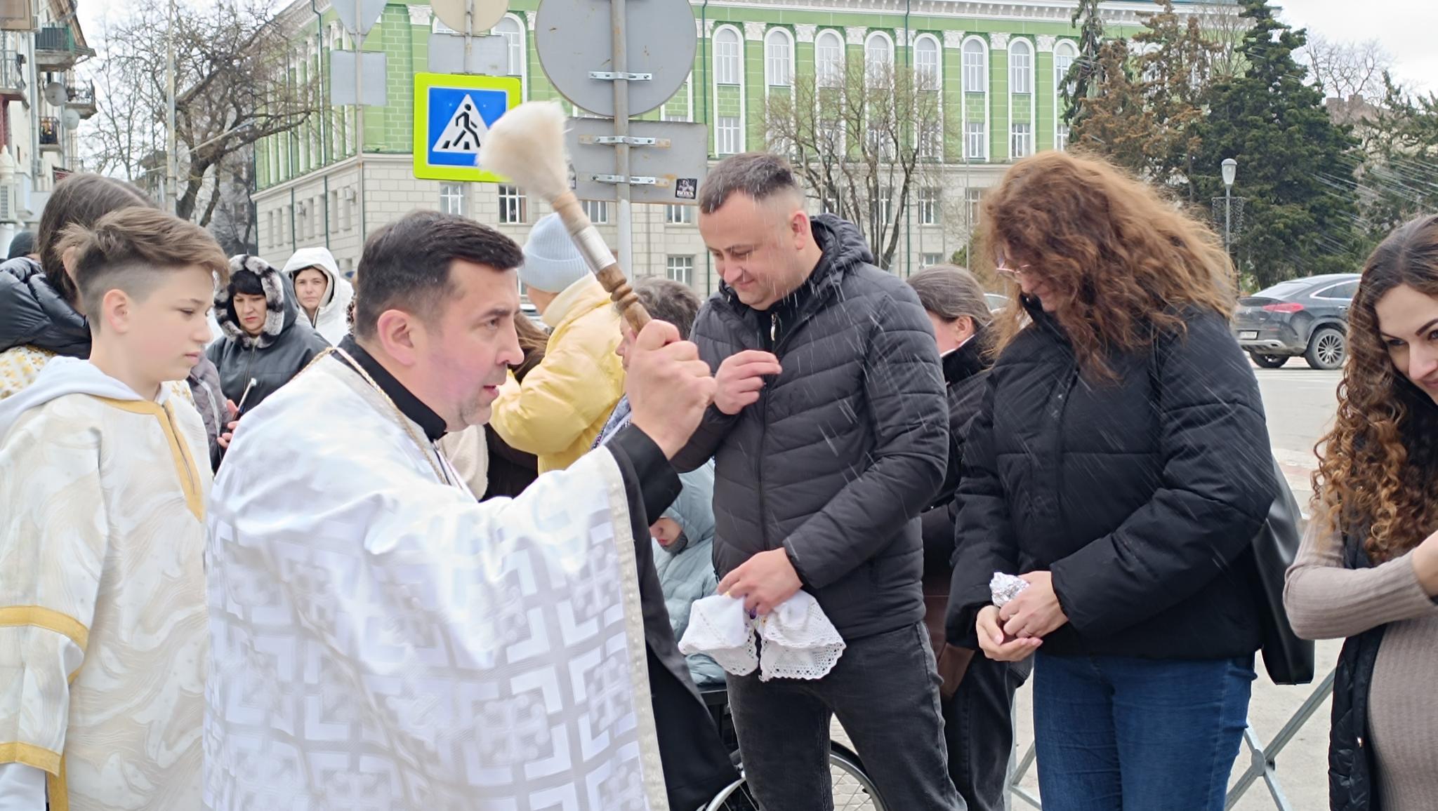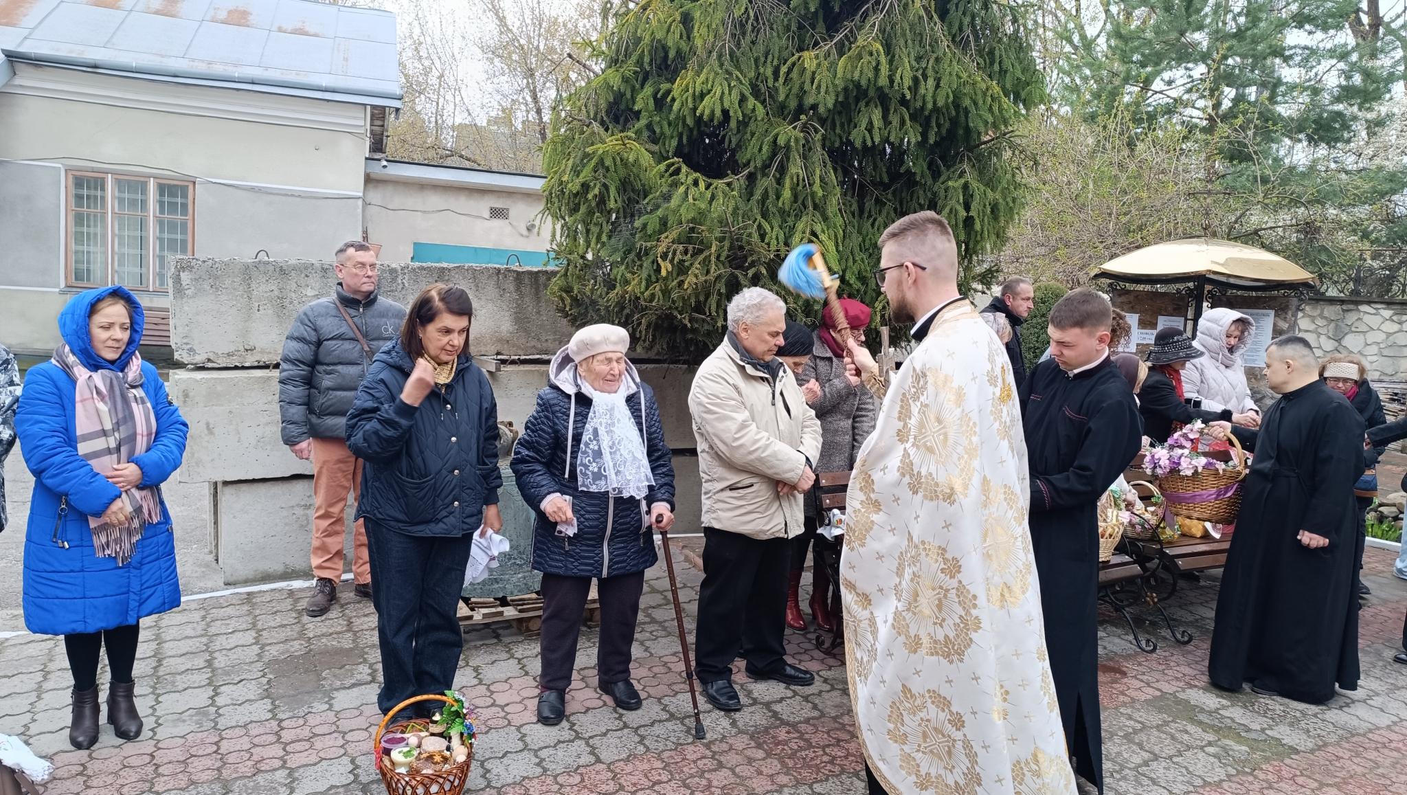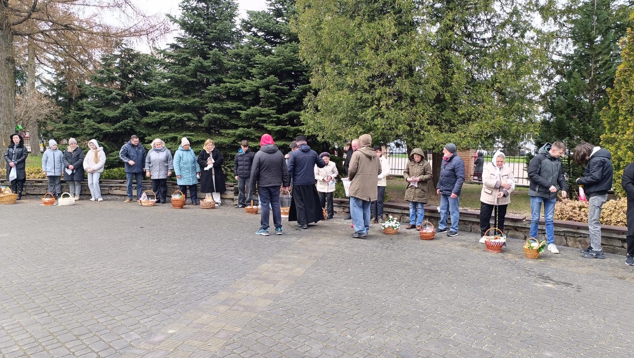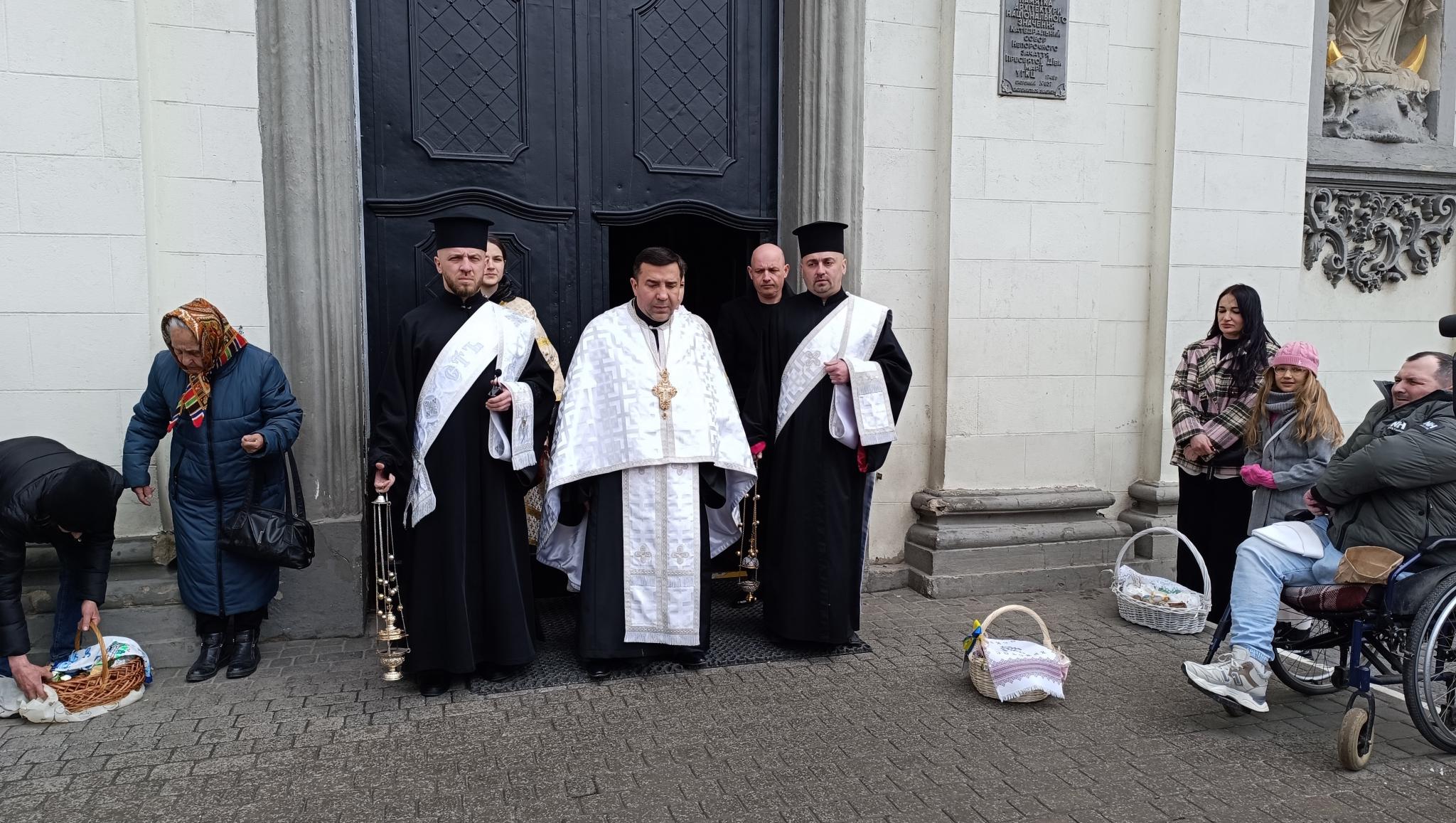 З 12 години освячують кошики у Кафедральному соборі Різдва Христового. На вулиці подекуди зривається дощ, та це не зупиняє вірян святити паски.