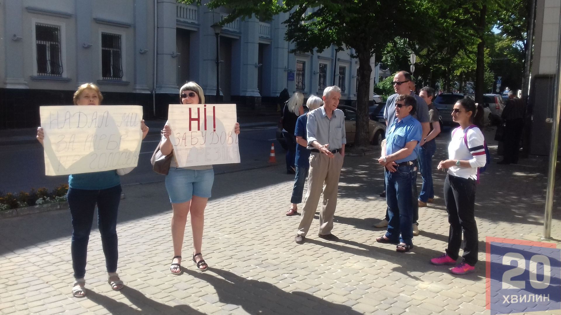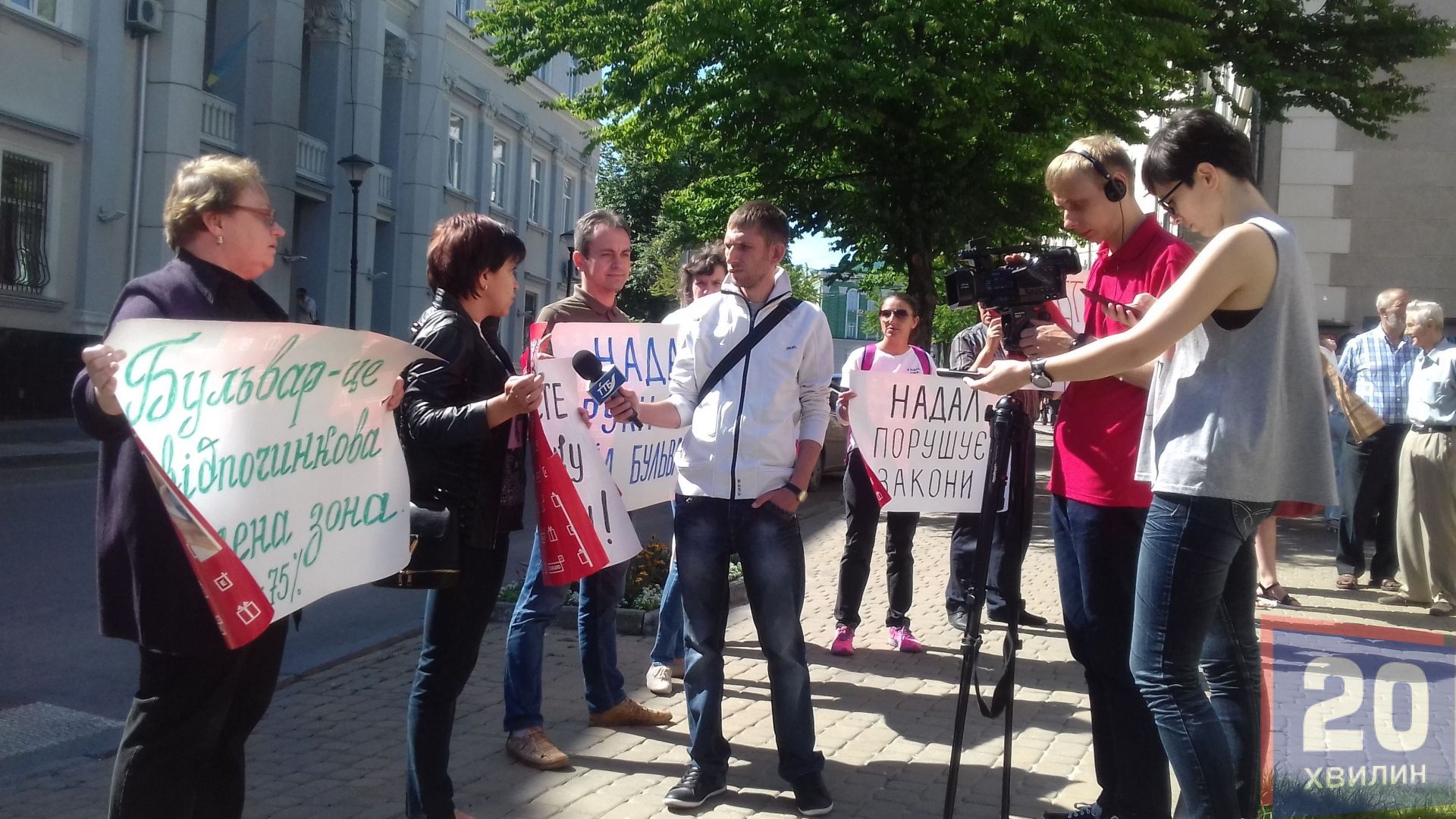 Під стіни міськради прийшли городяни, аби висловити своє бачення щодо незаконних забудов на вулицях міста. Міський голова запевнив, що все в межах чинного законодавства. Якщо вони з цим не згідні, повинні звертатися у правоохоронні органи.