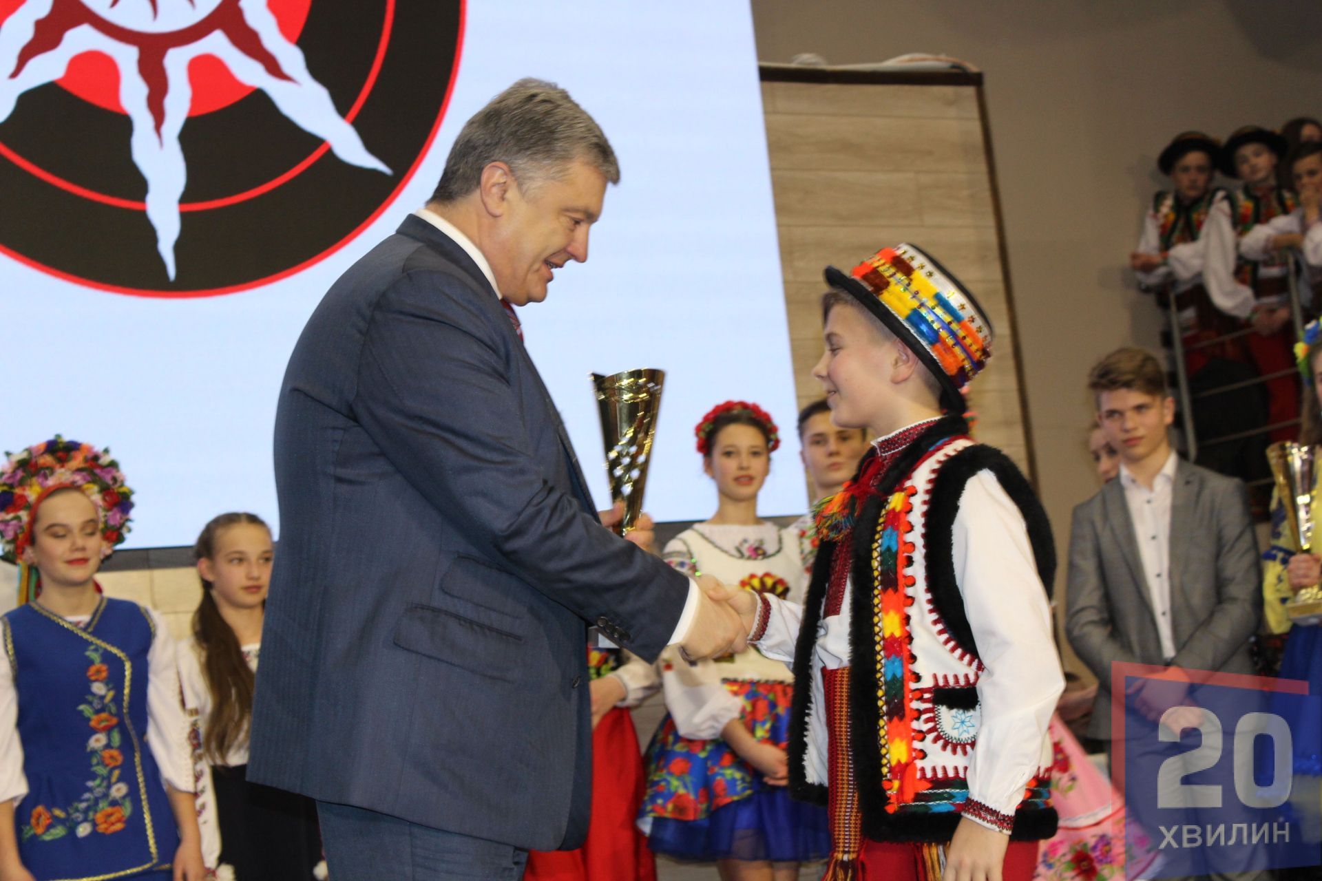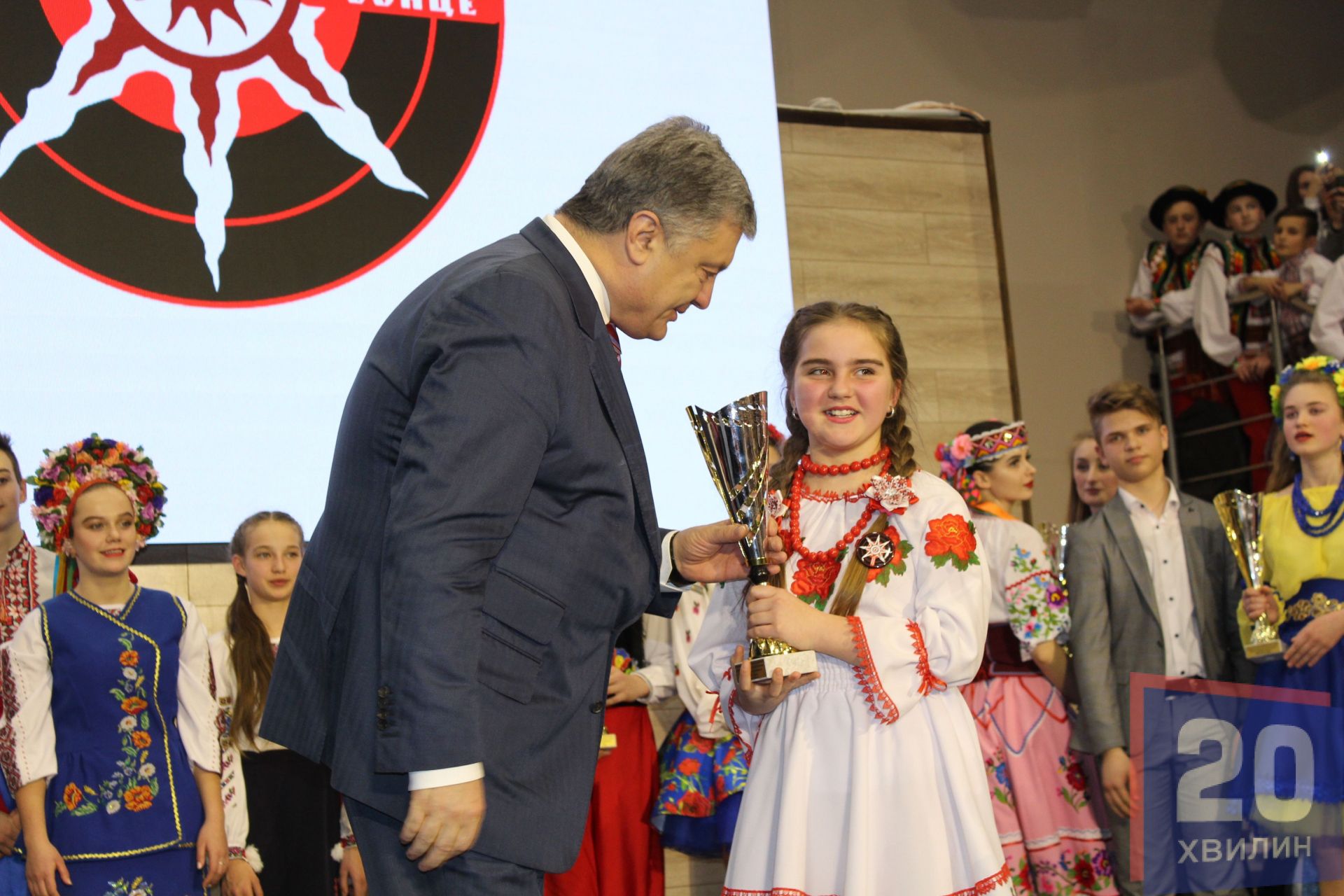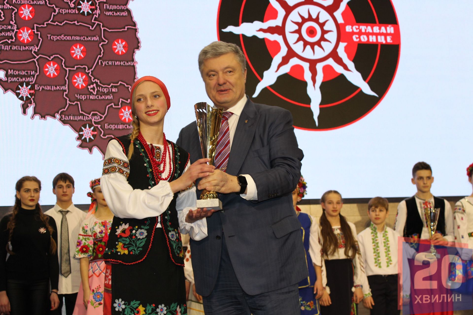 Петро Порошенко нагородив переможців фестивалю «Вставай, сонце», який проходив у 13-ти районах області і разом із усіма присутніми встановив рекорд України. Відбулось наймасовіше виконання пісні “Вставай, сонце”, автором якої є Андрій Підлужний. Учасниками рекорду стали 1500 жителів Тернополя та області.